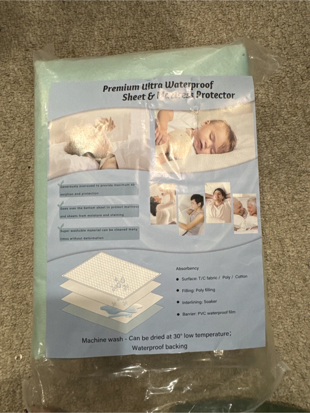 Selling a brand new premium ultra waterproof sheet and mattress protector! To provide maximum absorption and protection. The material is super washable and can be cleaned many times without deformation.