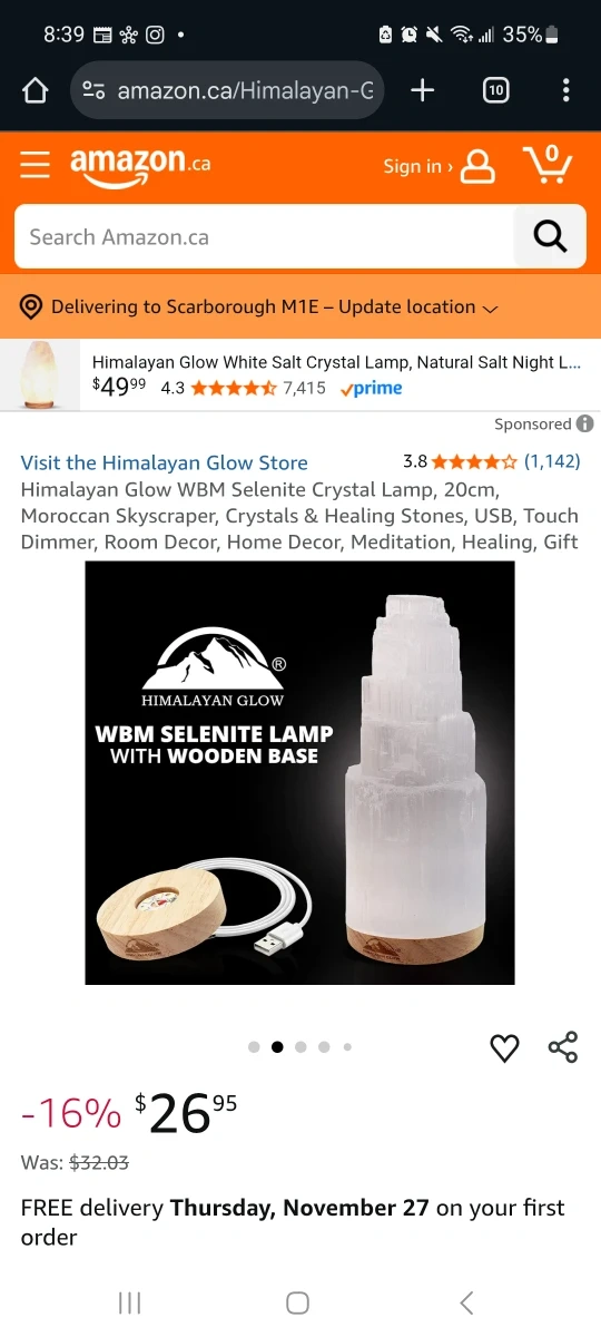 Selling a Himalayan Glow WBM Selenite Crystal Lamp! It comes with a wooden base and USB touch dimmer. Great for creating a calming atmosphere in your home. The lamp is about 20cm tall. Comes with the original box and accessories