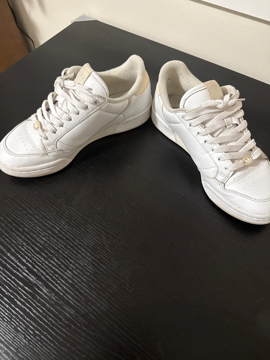 Selling a pair of Adidas Continental 80 sneakers in white. Still in good condition for everyday use. Great for a casual look!