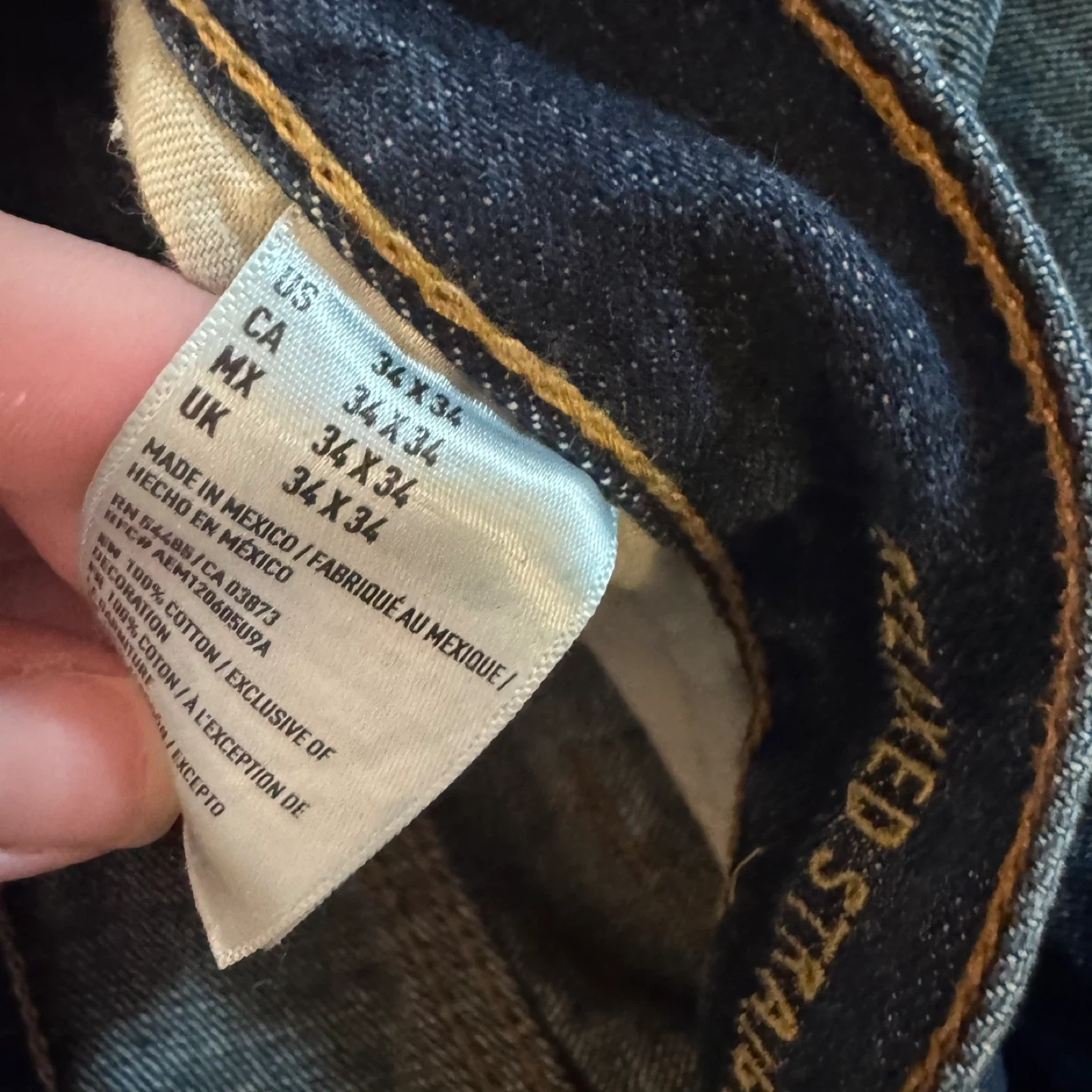 Selling a pair of American Eagle jeans. They're in good condition and have a classic look. Perfect for everyday wear! W34 X L34.