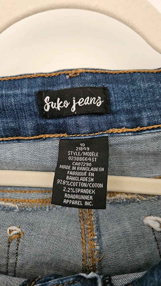 Suko Jeans blue denim shorts in a Medium size 10. They are made of 97.8% cotton and 2.2% spandex. These shorts are a stylish and perfect for summer! In great condition!