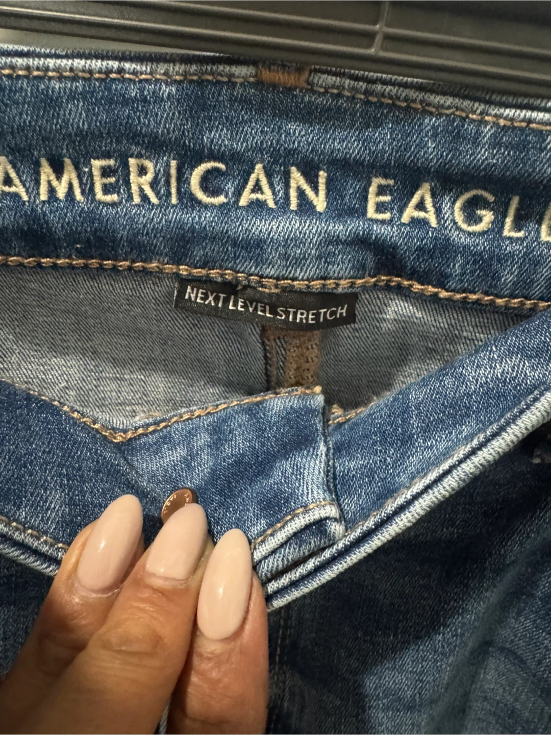 Selling a pair of American Eagle 'Next Level Stretch' jeans. They are quite ripped, as you can see in the photos!