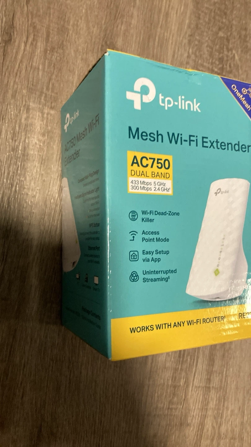 Selling a TP-Link AC750 Mesh Wi-Fi Extender! It's dual band, offering 433 Mbps at 5 GHz and 300 Mbps at 2.4 GHz. It works with any Wi-Fi router and is designed to eliminate dead zones. Easy setup via app and uninterrupted streaming! The box is included too