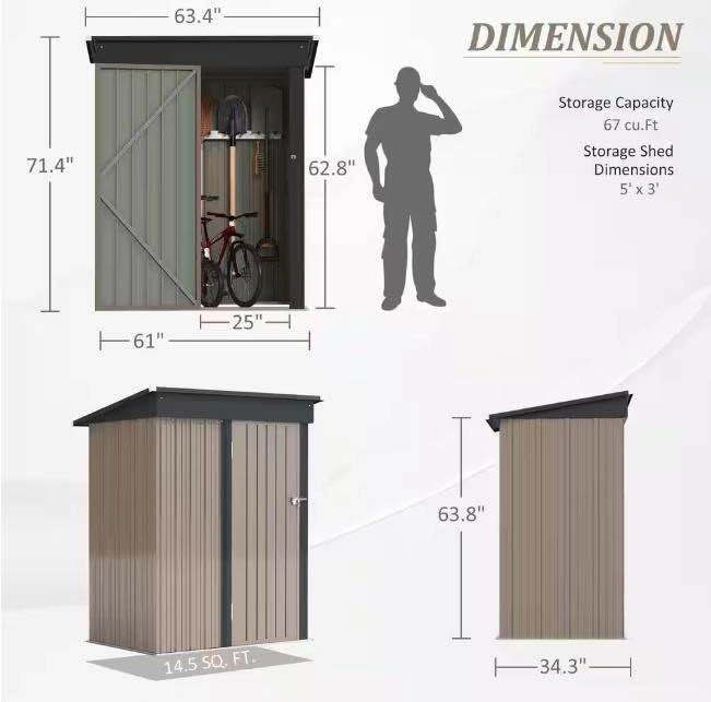 Upgrade your backyard storage with this durable 5 ft x 3 ft metal shed, perfect for tools, lawn equipment, bikes, outdoor décor, and more.