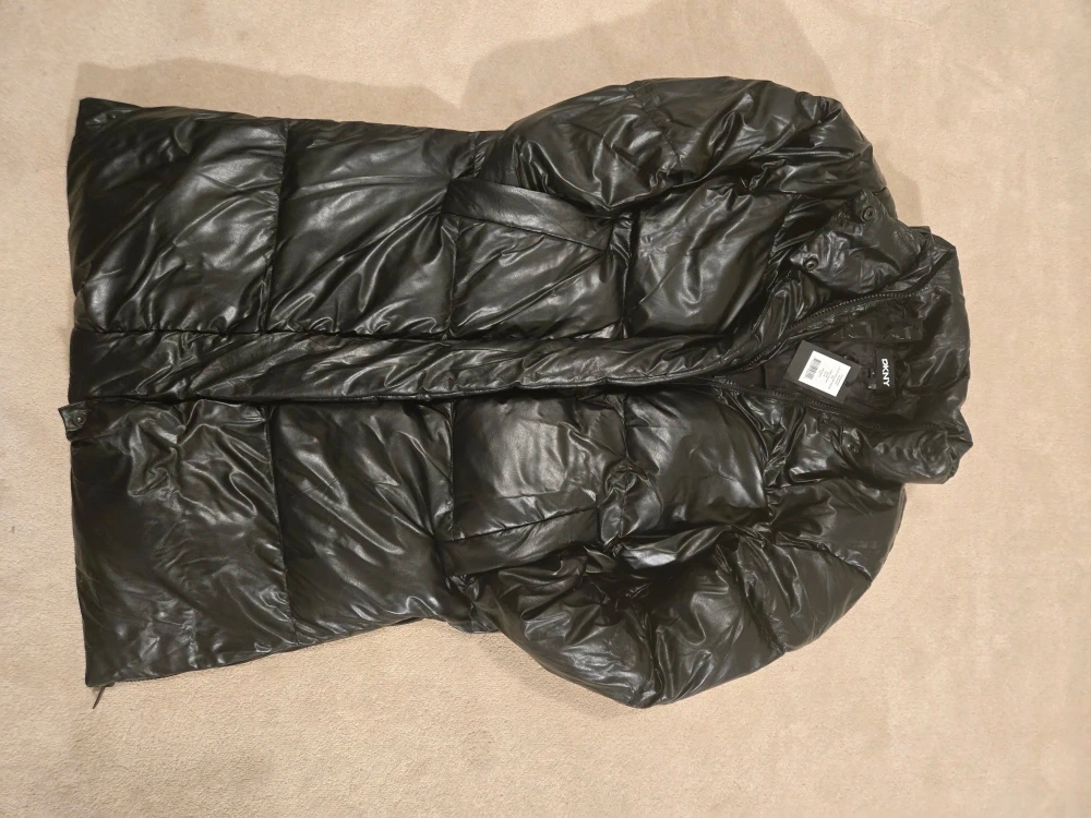 Selling a DKNY puffer jacket in black, size small. It's in great condition and ready to keep you warm! The style number is B3250155. Perfect for the cold weather!