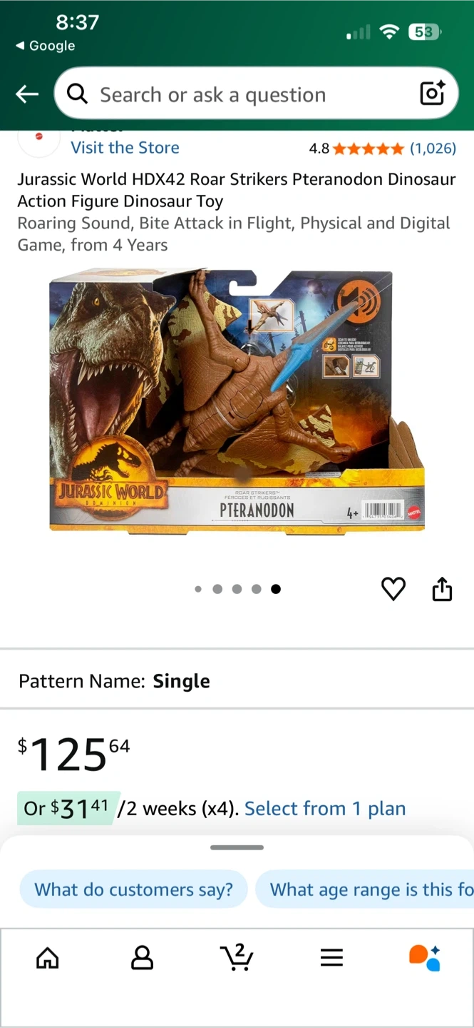 Selling a Jurassic World Pteranodon Roar Strikers dinosaur action figure! It makes roaring sounds and features a bite attack in flight. This toy is suitable for children aged 4 and up. Originally bought for $125.64