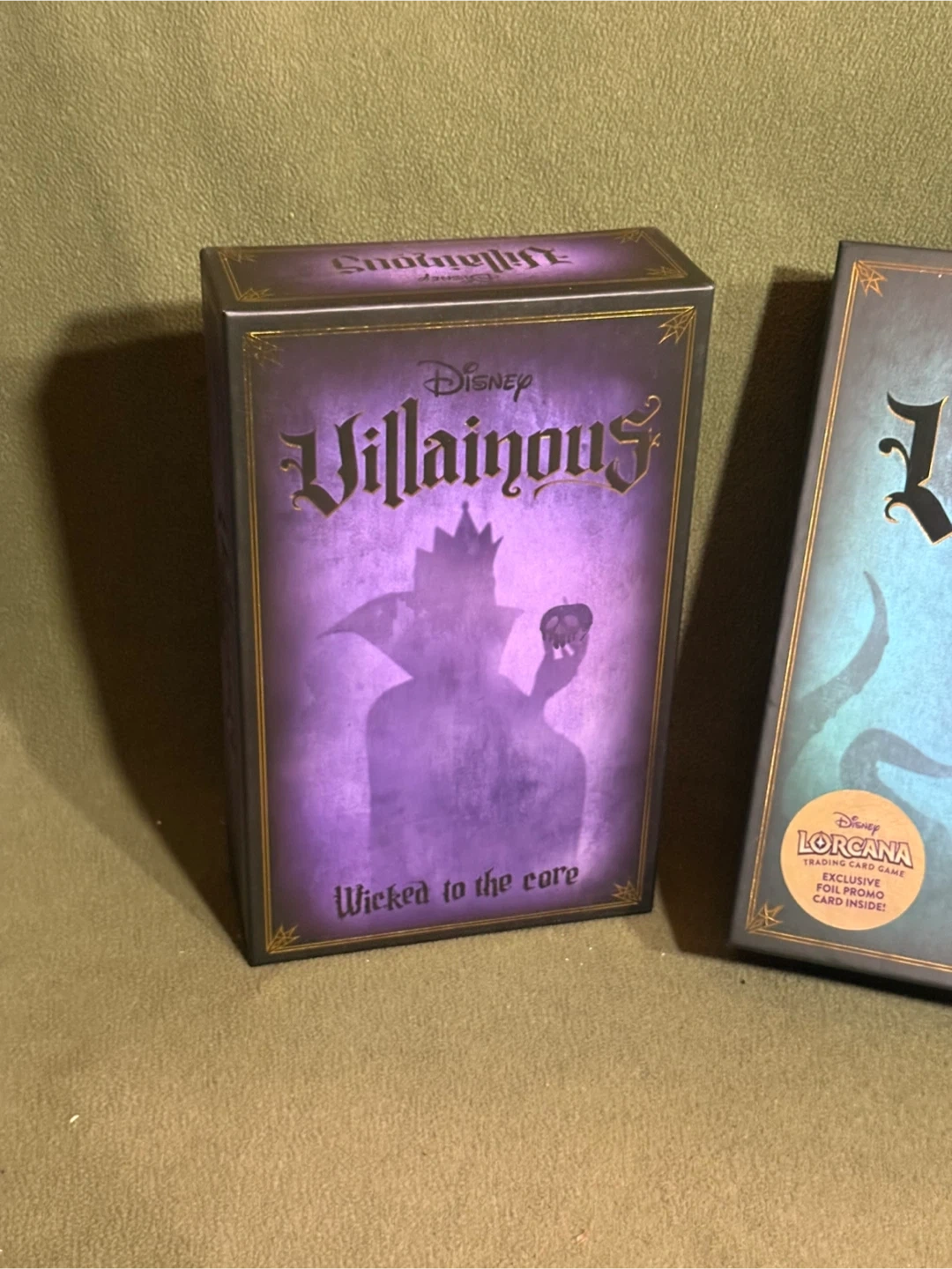 Dive into the world of Disney villains with this collection of three Villainous board game sets, including "Wicked to the Core," "Introduction to Evil," and "Bigger and Badder". These new games are in excellent condition, ready for new scheming sessions. Each set allows you to play as iconic Disney villains, strategizing to achieve your character's unique objective. Expand your Villainous collection and challenge your friends and family to see who can be the most deviously successful!