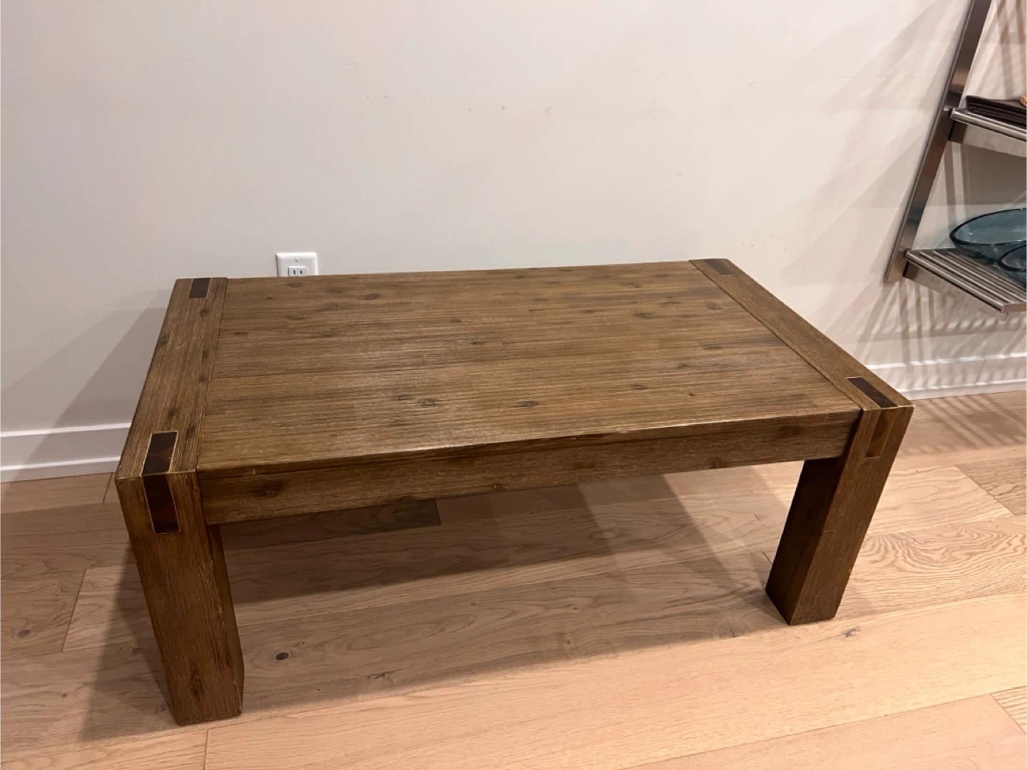 Selling a lovely wood “rustic” coffee table from the Structube Hamburg collection. Perfect for any living room! It's in great condition and ready for a new home. The wood grain adds a touch of warmth and character to your space.