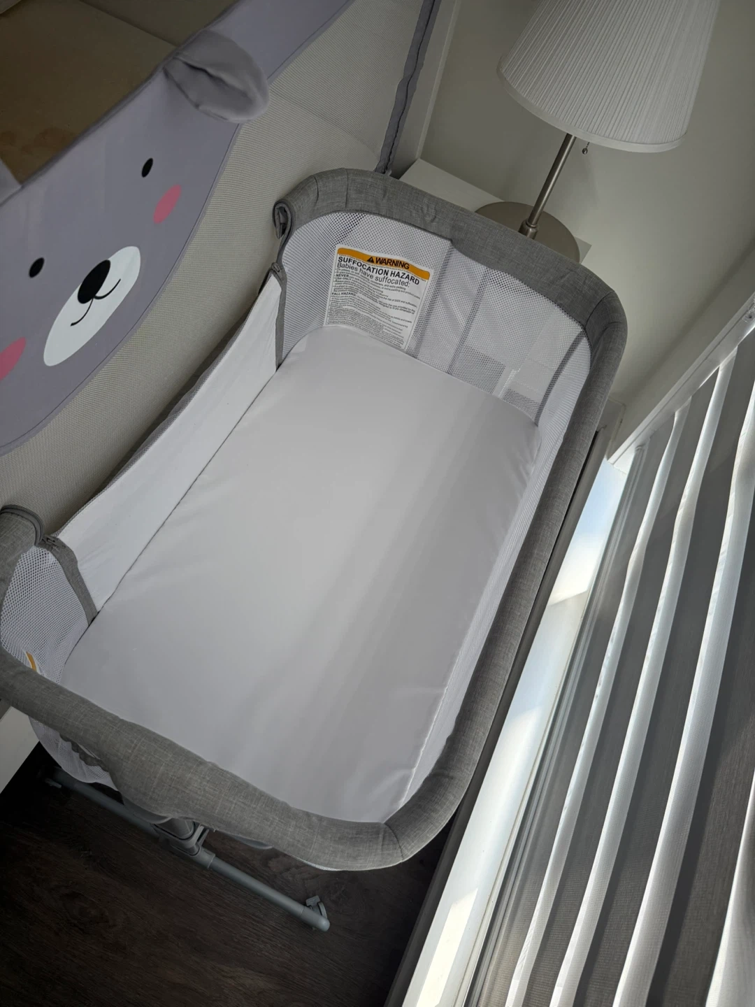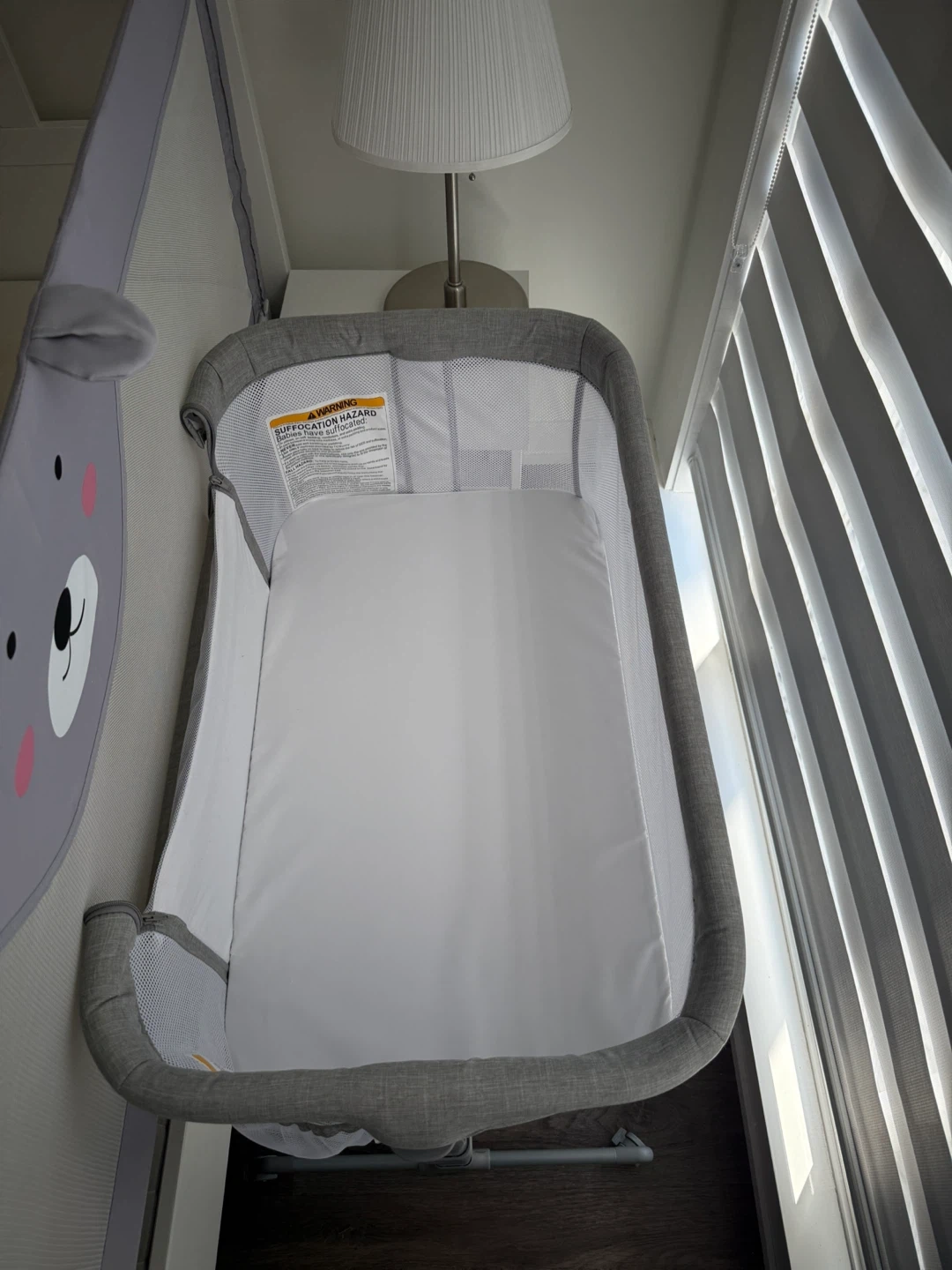 Selling a beautiful, modern baby bassinet in excellent condition. It was only assembled and used for one night — my baby preferred sleeping with me, so the bassinet is practically new.