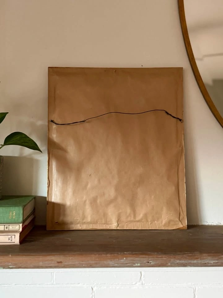Vintage Floral Needlepoint Art in Gold Frame 13.5" x 16"