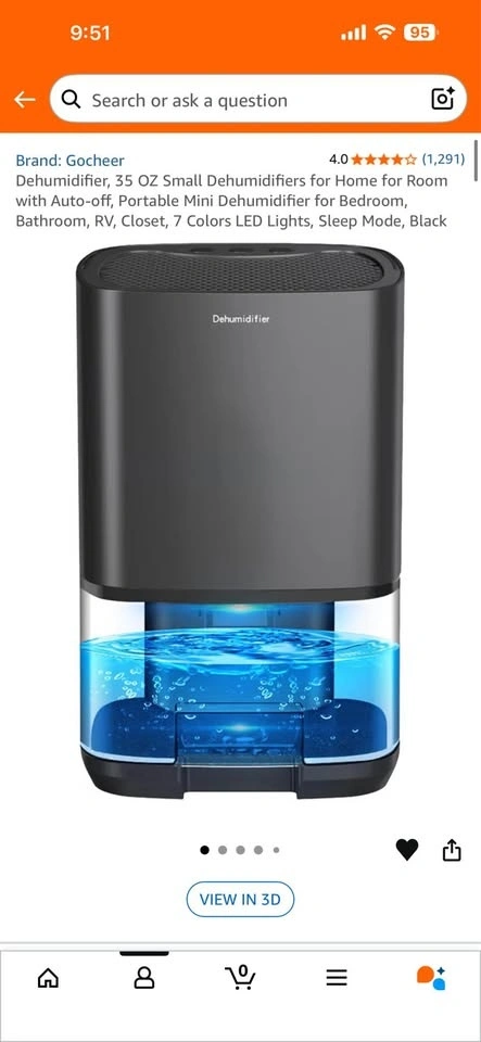 Dehumidifier, 35 OZ Small Dehumidifiers for Home for Room with Auto-off, Portable Mini Dehumidifier for Bedroom, Bathroom, RV, Closet, 7 Colors LED Lights, Sleep Mode, Black