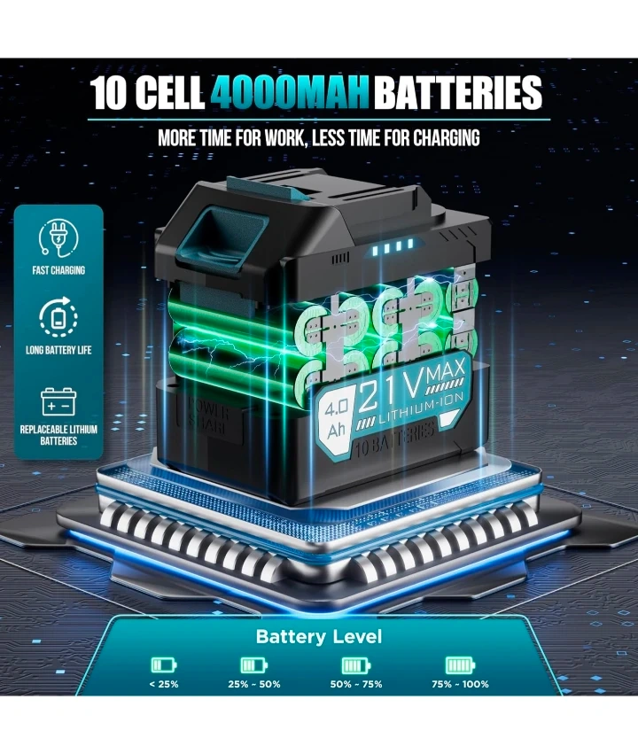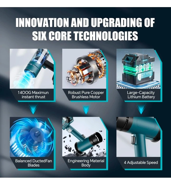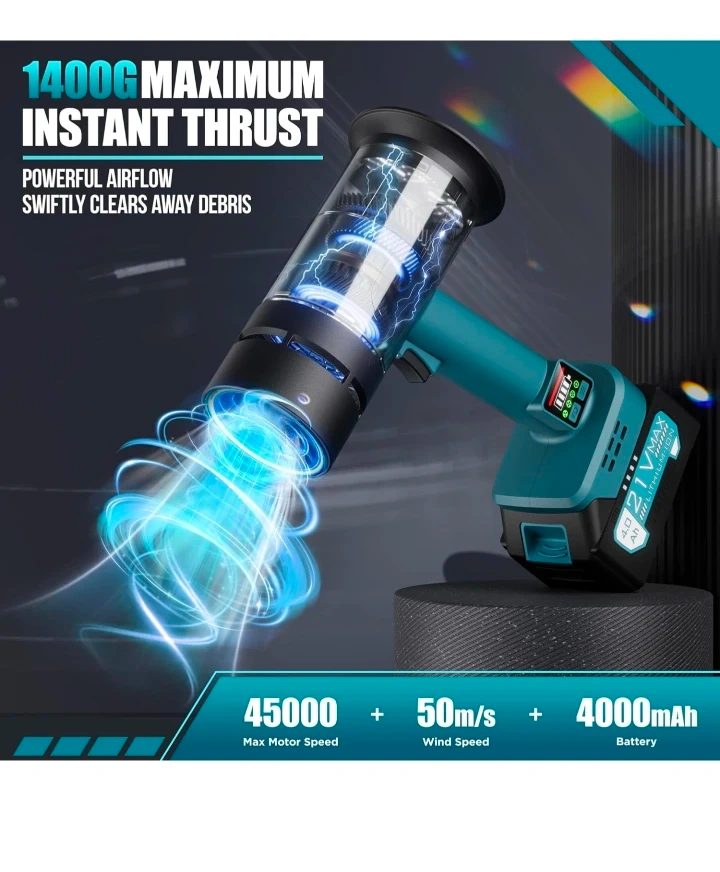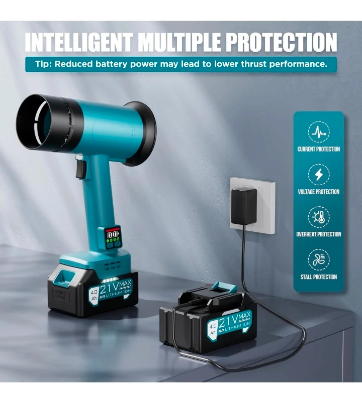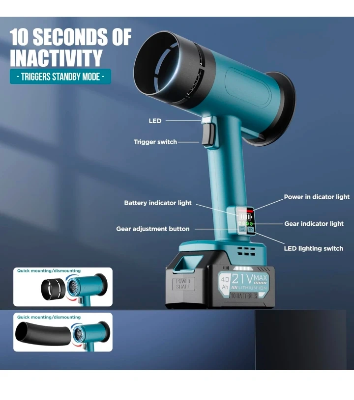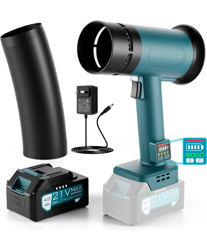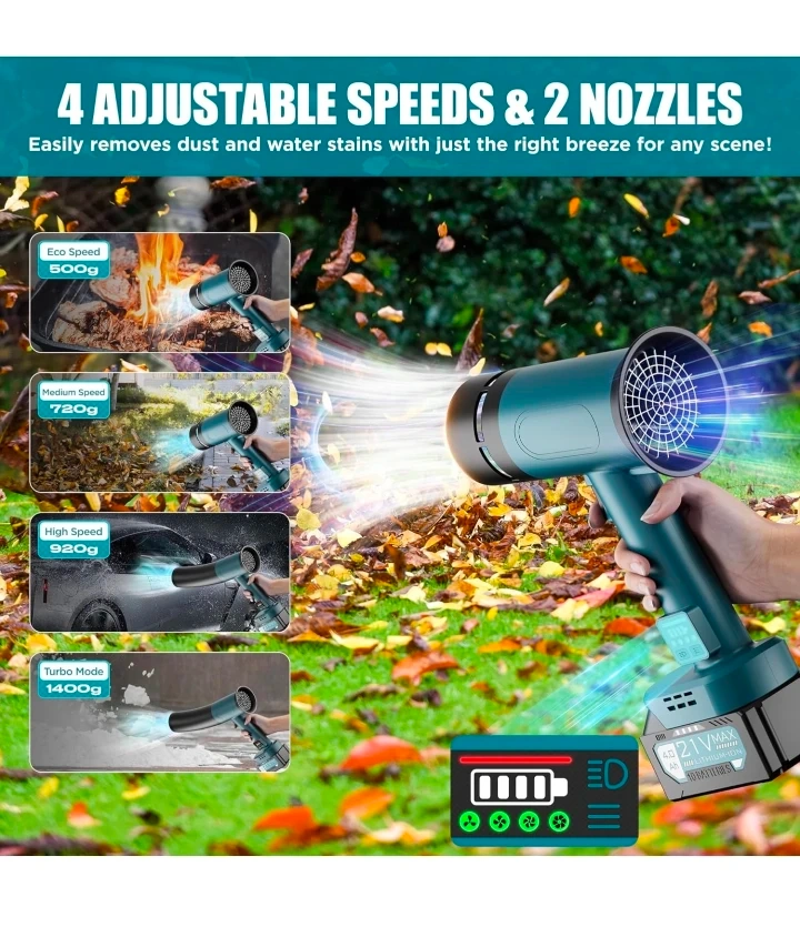 Turbo Dryer Blower for Car, 550CFM Cordless Leaf Blower with Extended Tube & 4000mAh Battery, 4-Speed Car Dryer Air Blower with LED Battery, for Car, Lawn, Patio & Garage Use