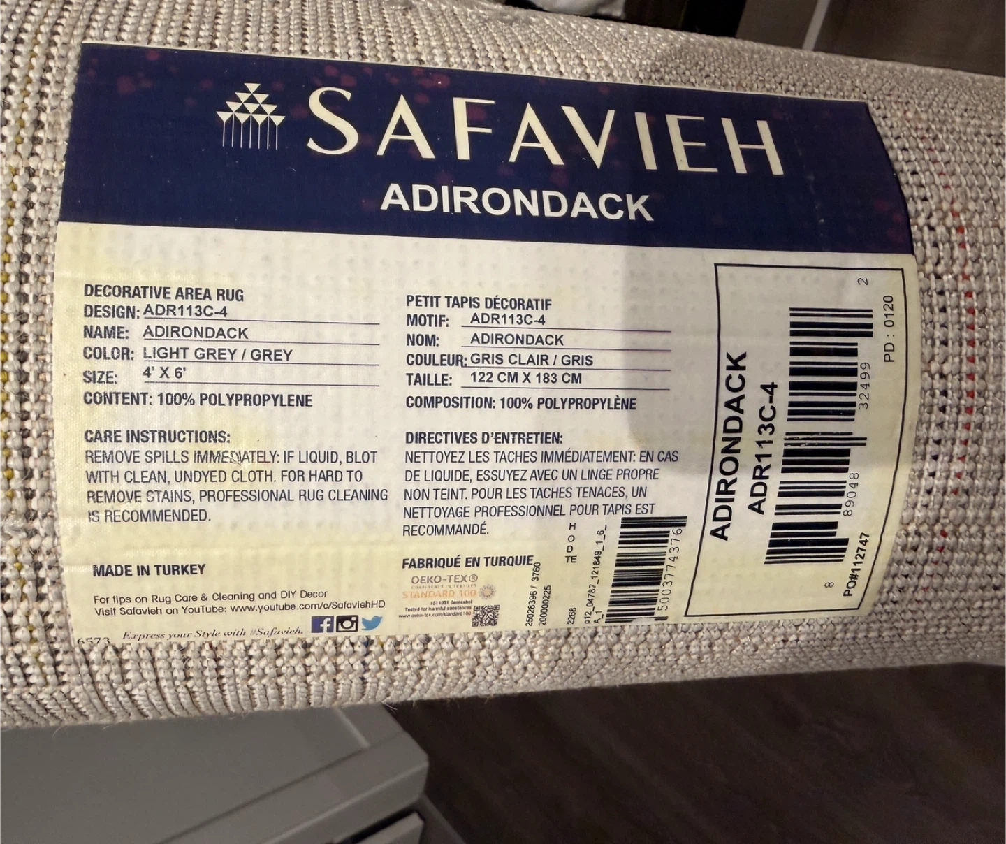 Selling a Safavieh Adirondack decorative area rug in light grey and cream. It's 4' x 6' and made of 100% polypropylene. Perfect for adding a touch of style to any room!