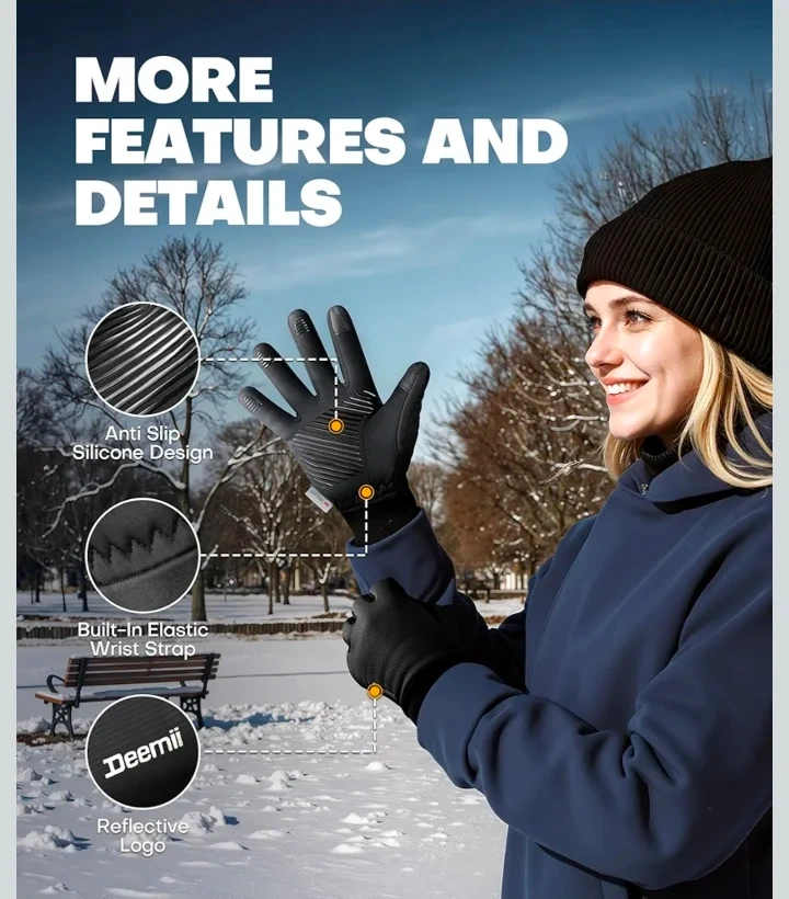 Winter Gloves Men Women Made with 3M Thinsulate, Lightweight Thermal Warm Gloves for Cold Weather with Touch Screen Fingers, Water Resistant Running Gloves for Cycling, Hiking, Driving