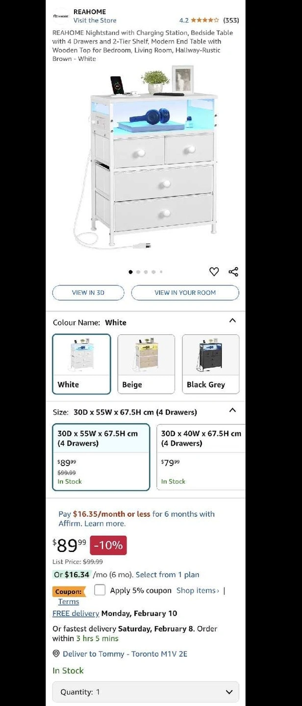 Reahome Nightstand white 4 drawers