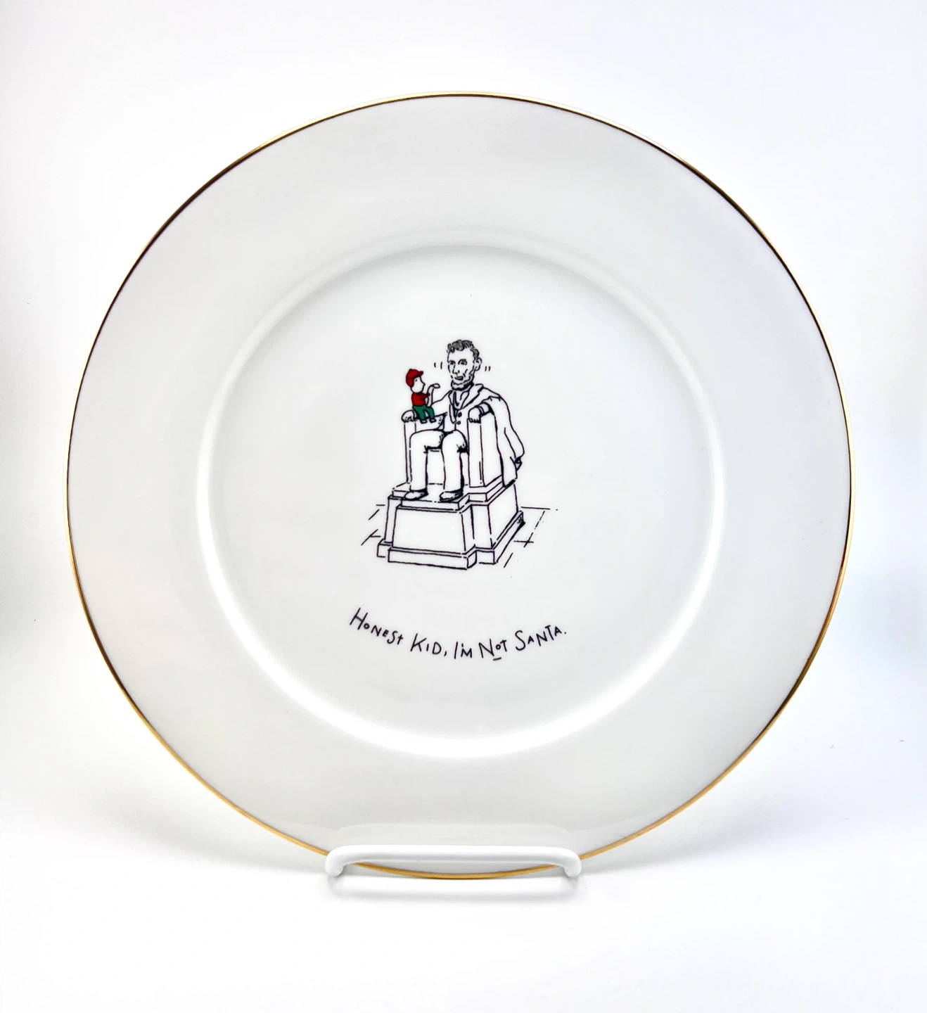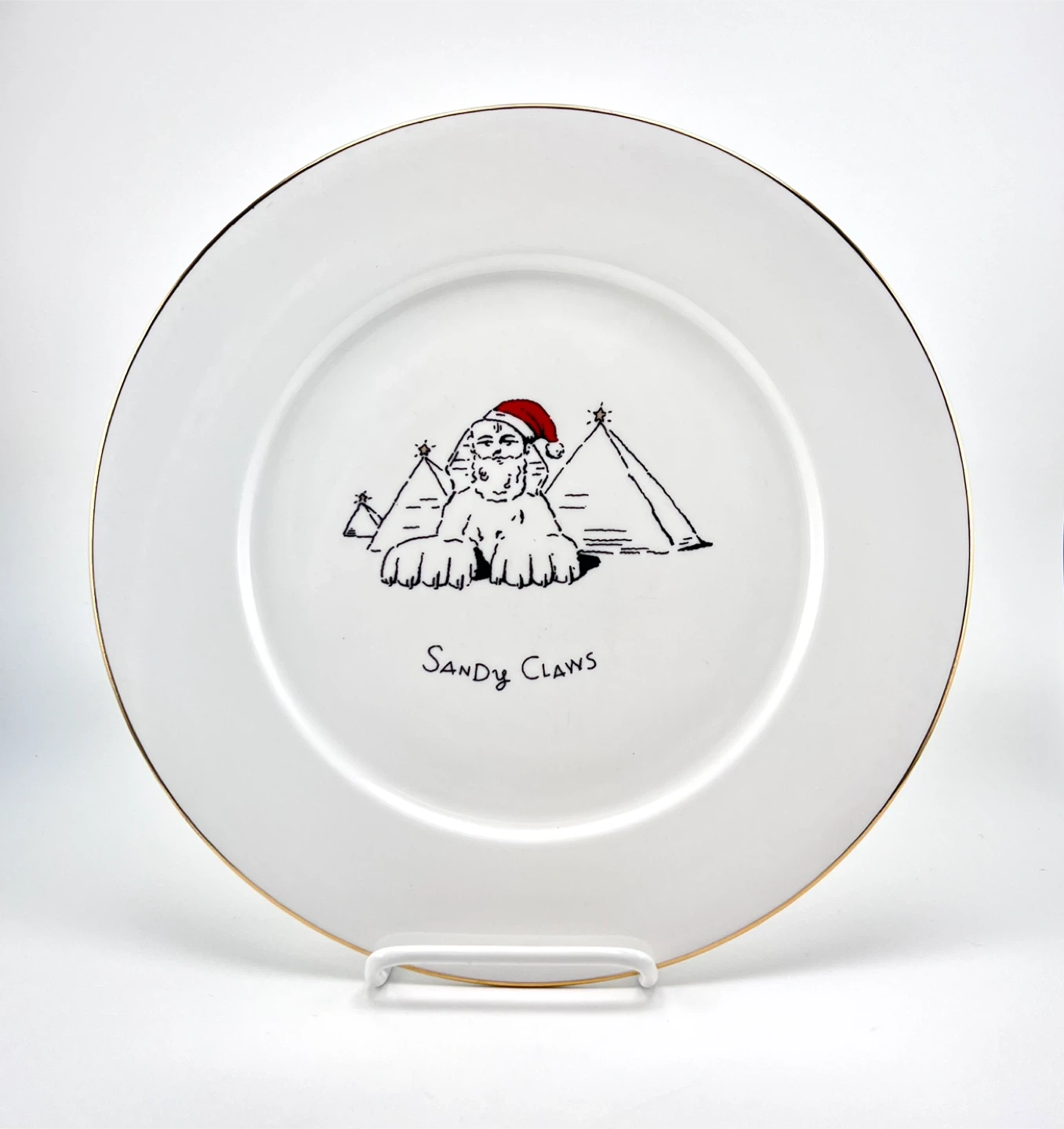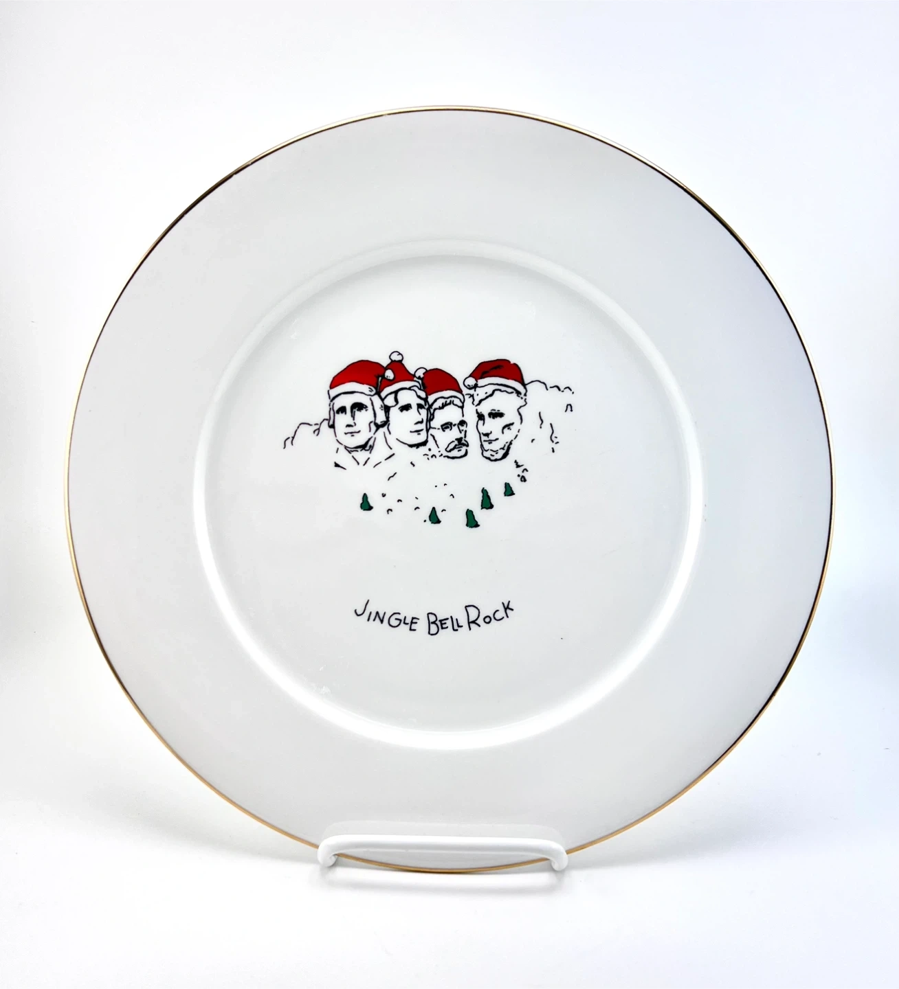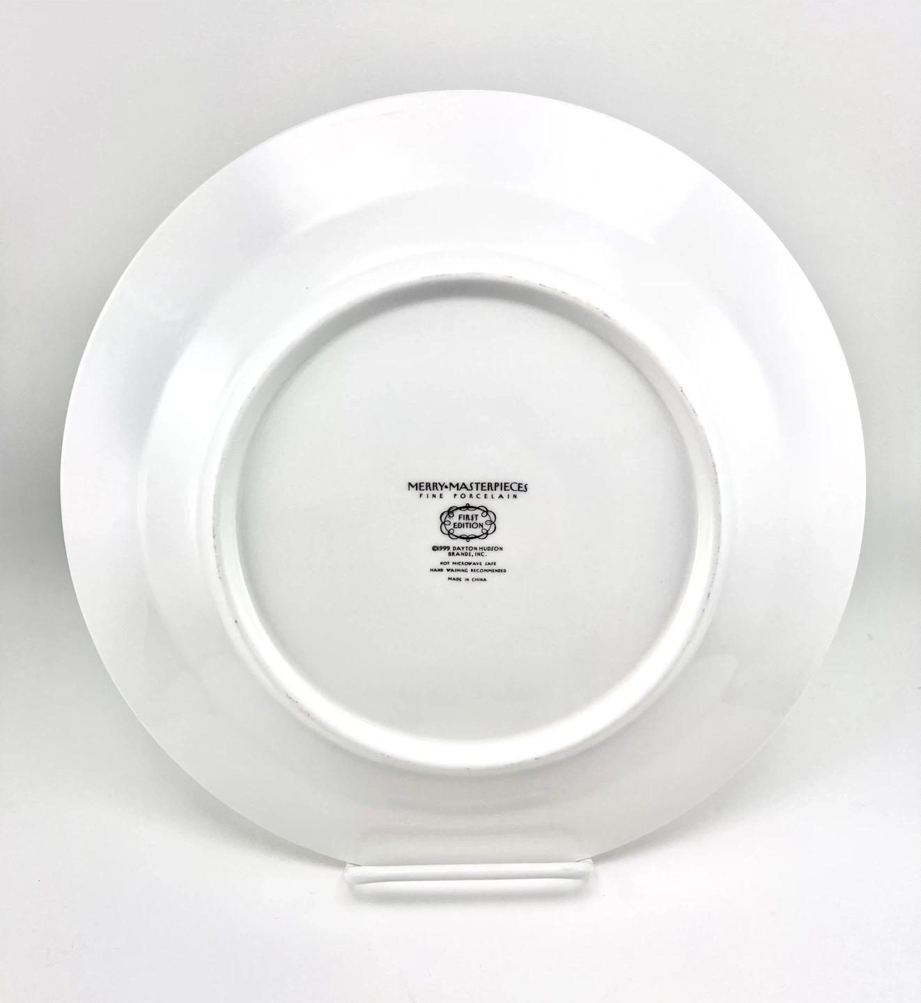 Set of 4 funny fine porcelain Christmas plates by Merry Masterpieces (First Edition). No chips, cracks, crazing or gold loss — all plates ping/ring