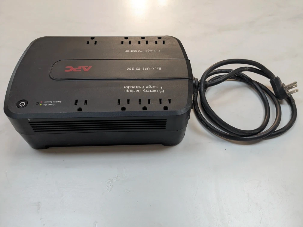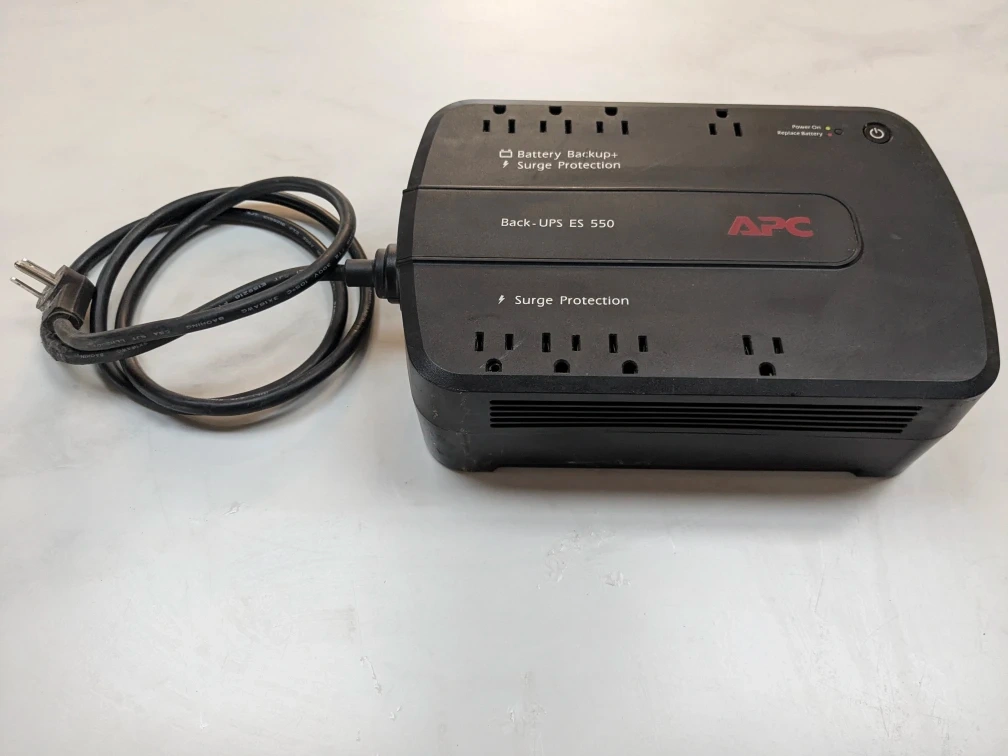 This is an APC Back-UPS ES 550, 550VA 330W UPS Battery Backup, providing surge protection and battery backup power for your electronic devices. It's in used condition.
