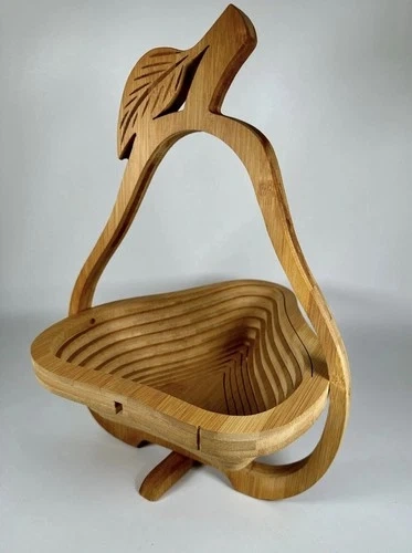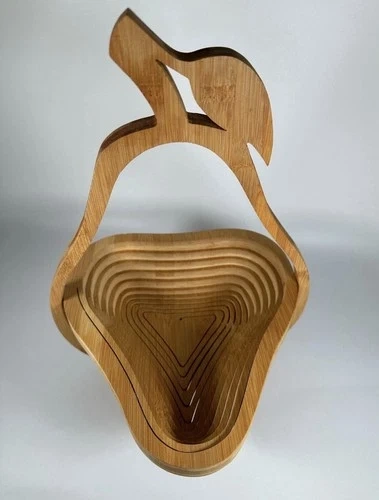 Wooden Collapsible Spiral Cut Pear-Shaped Folding Fruit Basket B