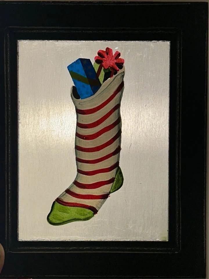 Christmas Decor – Hand-Painted Stocking Wall Art 6”/5”