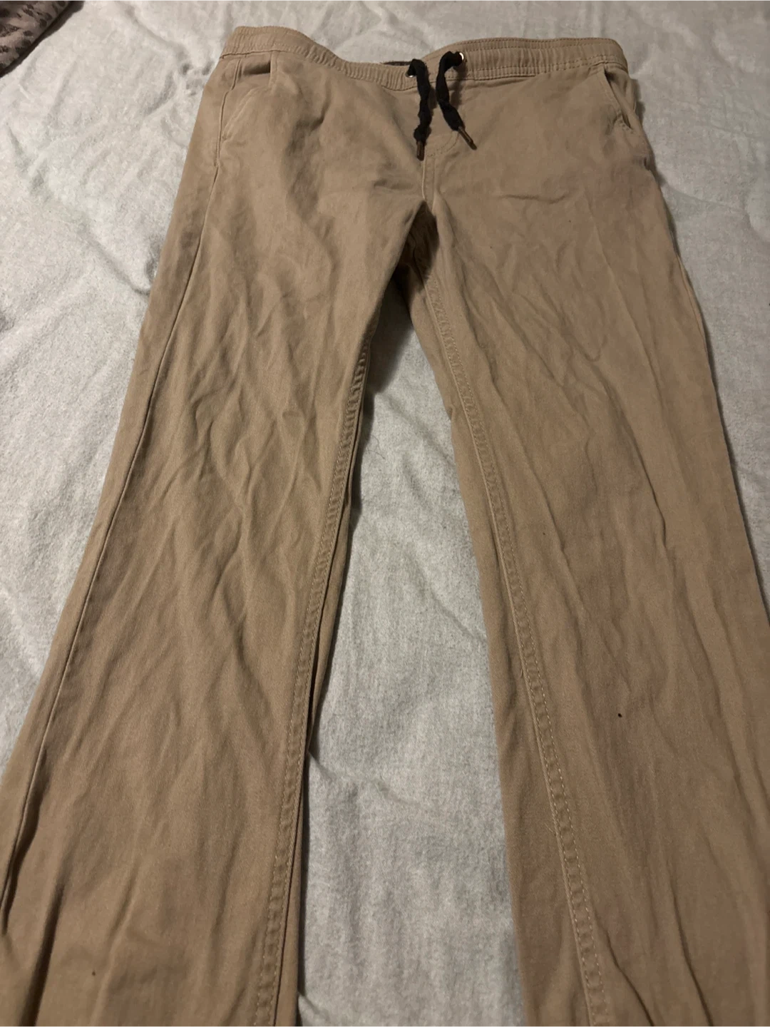 Selling a pair of West 49 khaki pants in size 15/16. These pants are perfect for everyday wear and are in good condition. They feature a comfortable drawstring waistband.