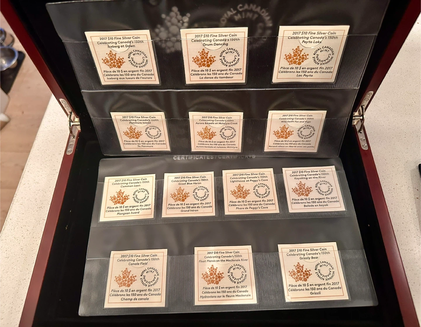 2017 complete set of RCM 150th Canada Anniversary coins. In the collector case. Each coin on 99.9% silver with a $10 value. Total price of $585 at release.