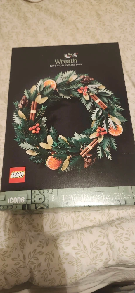 Selling a brand new LEGO Icons Botanical Collection Wreath, set number 10340! This set is perfect for anyone who loves LEGO and wants to add a beautiful, unique piece to their home decor. It's suitable for ages 18+ and contains 1194 pieces