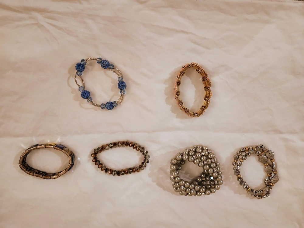 Selling a bundle of six assorted beaded bracelets! They come in a variety of colours and styles. All are of good quality and in perfect condition. Stretchy and easy to put on. Entire lot for $20, but will sell individually on request.