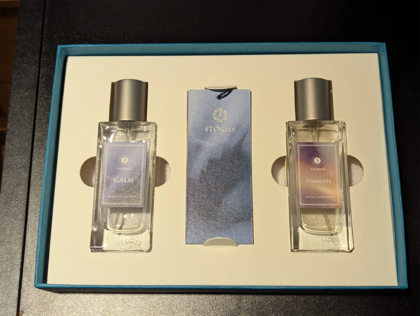 This is a STORIES scented spray set, including two natural scented sprays: Calm and Complete. The set comes in a box, making it perfect for gifting or treating yourself! Both sprays are in excellent condition and ready to bring a touch of elegance to your day