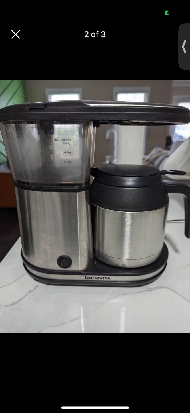 I'm selling a Bonavita 5-Cup Stainless Steel Carafe Coffee Brewer. It comes with the box! Perfect for brewing a smaller amount of coffee, and the stainless steel carafe will keep it warm for hours
