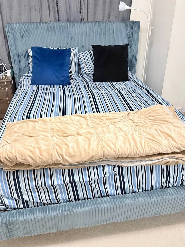 The bed features a luxurious royal blue velvet upholstery, giving your room a classy and elegant look.