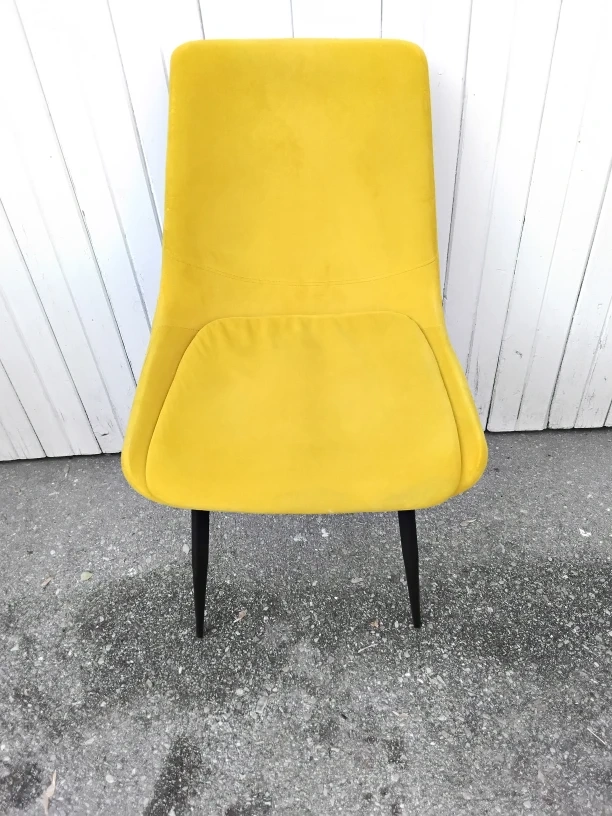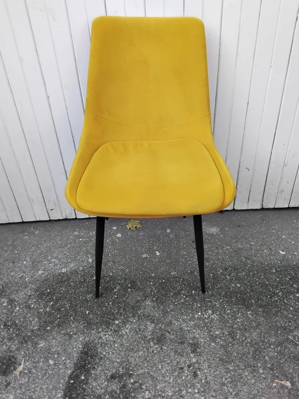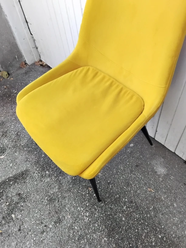 💫Selling a comfortable yellow velvet dining chair! It's in great condition and would look lovely in any dining room or as an accent chair in another space. The black legs provide a nice contrast to the vibrant yellow velvet. 🐝