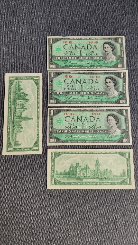 Selling a set of Canadian one dollar bills from 1967. They commemorate the Centennial of Canadian Confederation. Perfect for collectors!