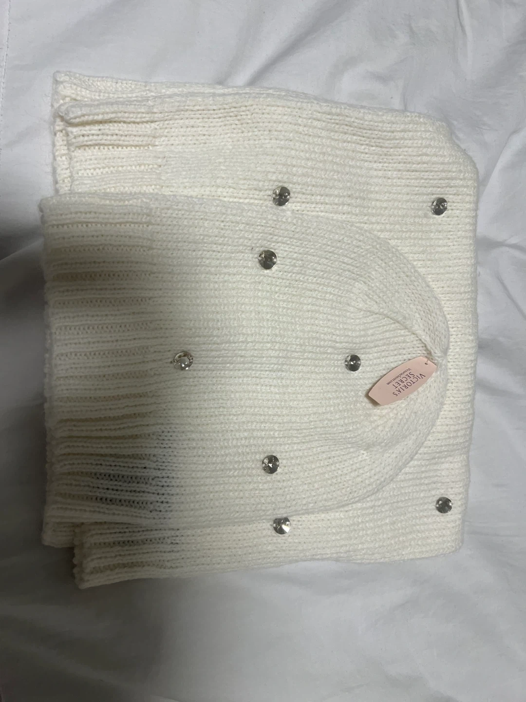 Brand new with tags: Victoria's Secret White Knit Scarf & Hat