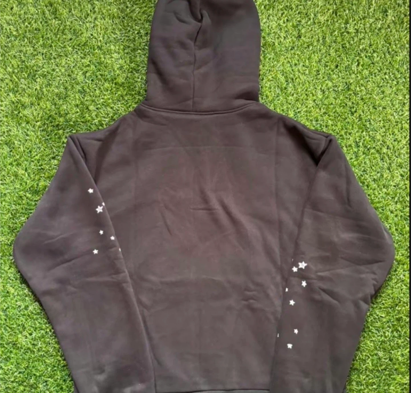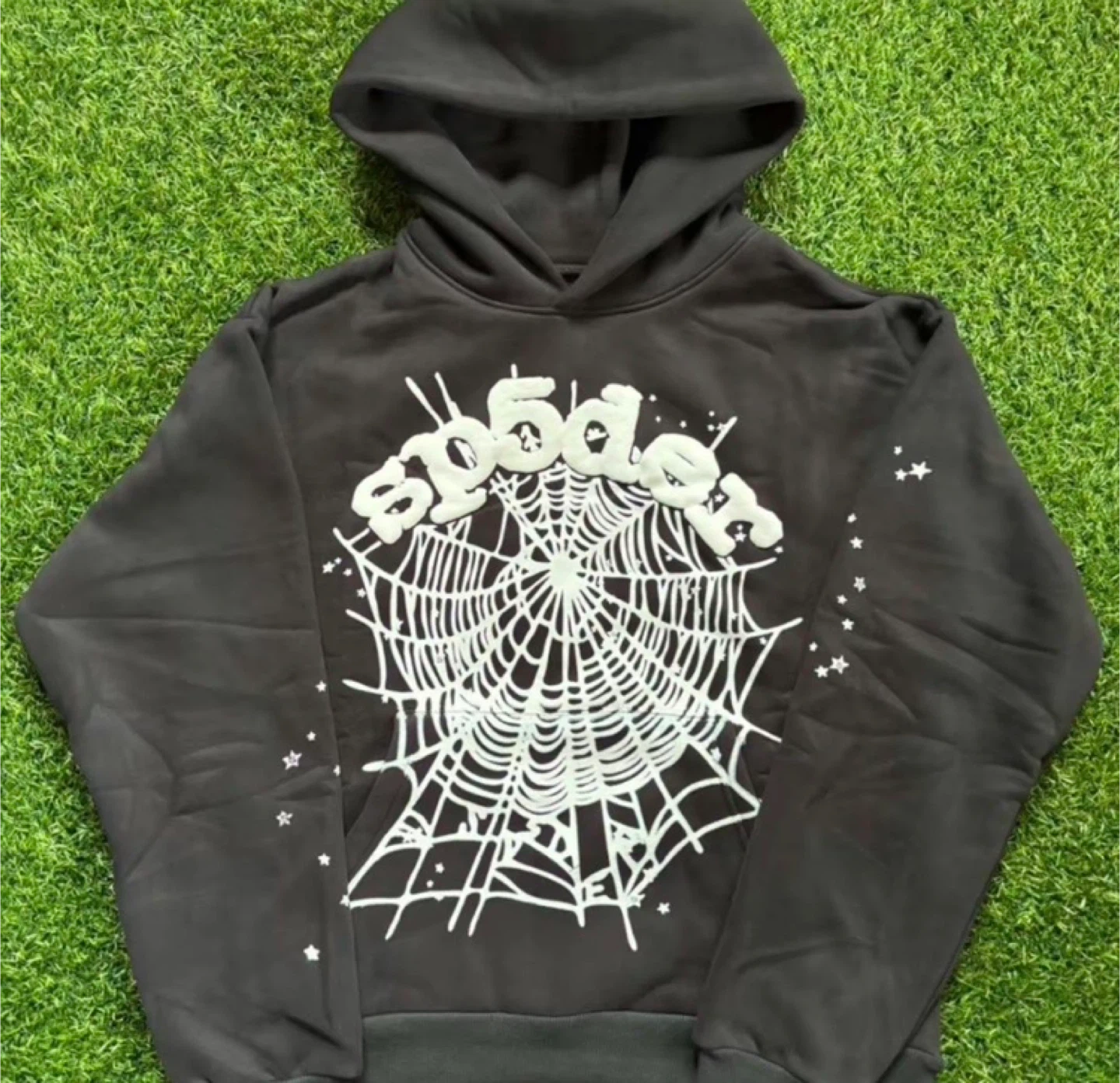 This is a brand new Sp5der black hoodie. It features a unique spiderweb design and star accents. It comes in the original packaging.