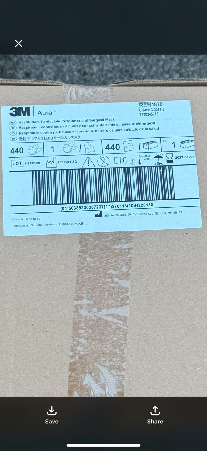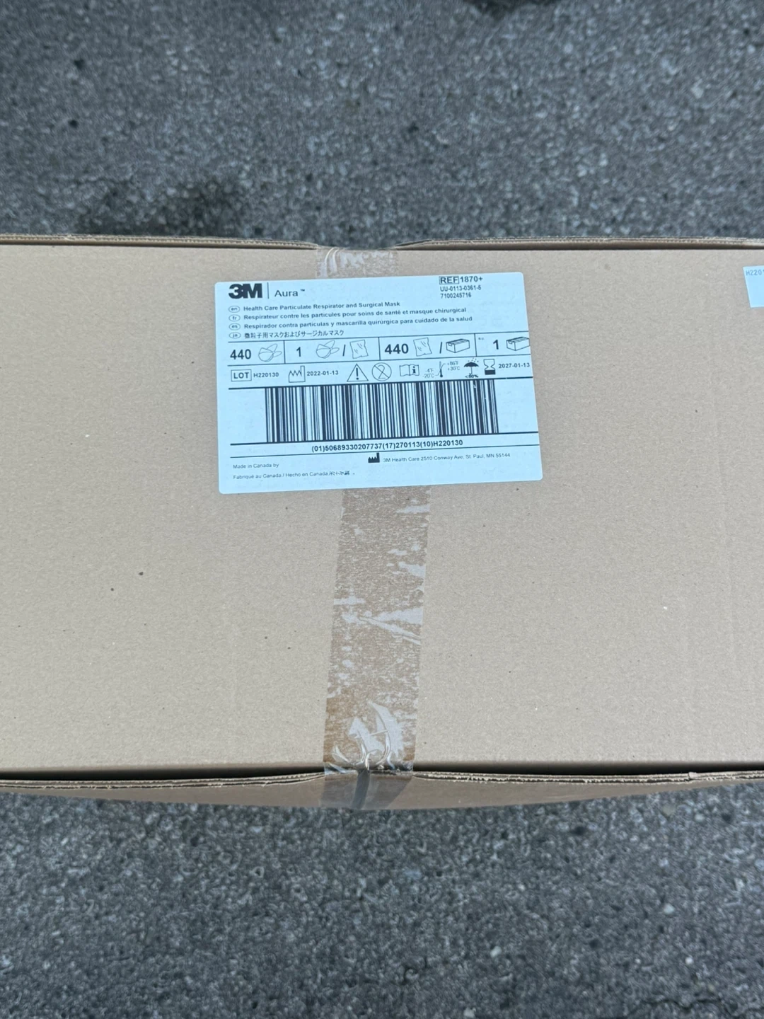 Brand new 3M Aura 1870+ Surgical Respirator Masks — full, sealed case of 440 masks.
