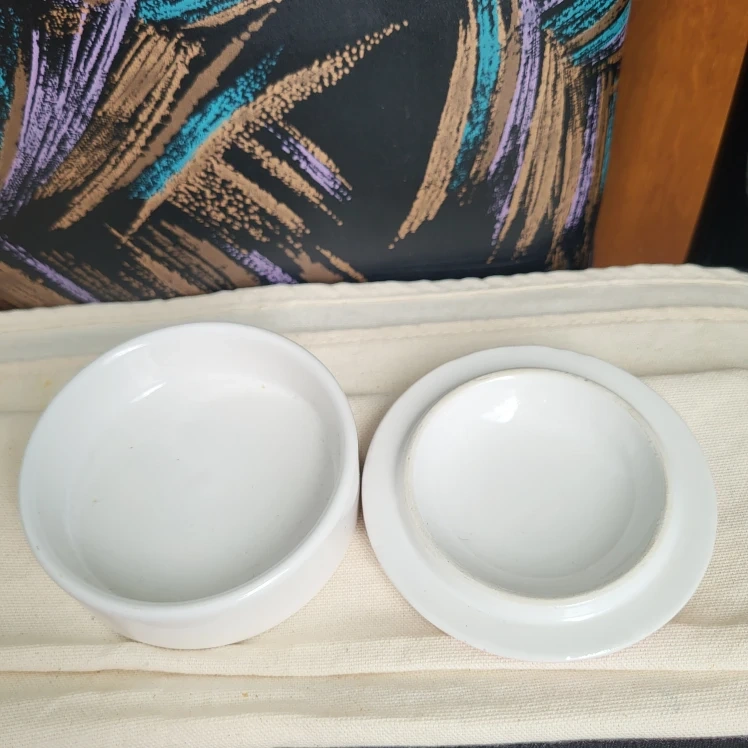 Selling a lovely trinket box from R.B. Bernarda, made in Portugal. It features a delicate floral design in shades of pink and purple on a white background. Perfect for storing small treasures or adding a touch of elegance to your dresser
