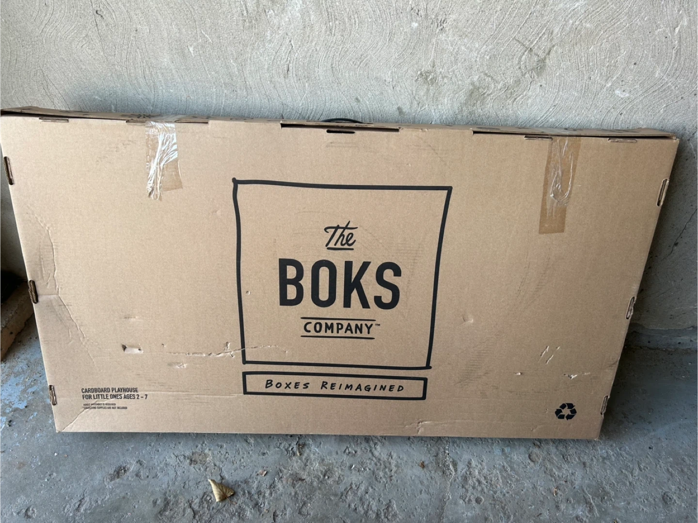 Selling a cardboard playhouse from The Boks Company! It's a great way to encourage imaginative play for little ones aged 2-7. New in box and ready for building. Build. Decorate. Play.