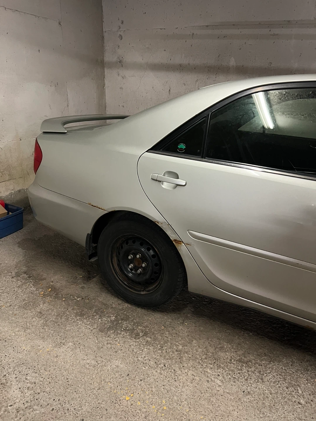 ** selling as is ** Selling my daily driven camry as i got a newer car. Clean inside and out. A little bit rust on rear passenger (shown in photos). Comes with all season tires, around 70% life left. New brakes and rotor pads (installed November 2025). Aftermarket stereo with bluetooth. A/C and heat works very well. Needs rear driver side wheel bearing replaced. Car is well maintained and cared for. Price is negotiable to a reasonable amount but I will not respond to low balling prices.
