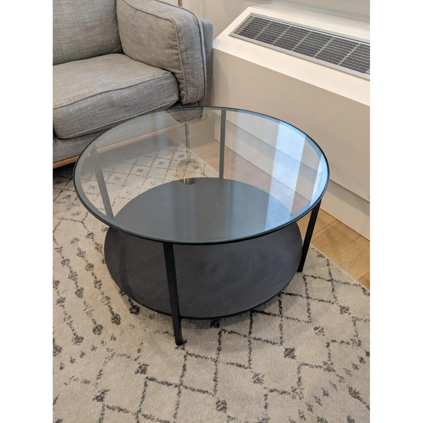 Selling a lovely IKEA Vittsjo coffee table! It's in great shape and would look perfect in any living room. The table features a round glass top and a lower shelf for storage or display. It's a stylish and functional piece for your home