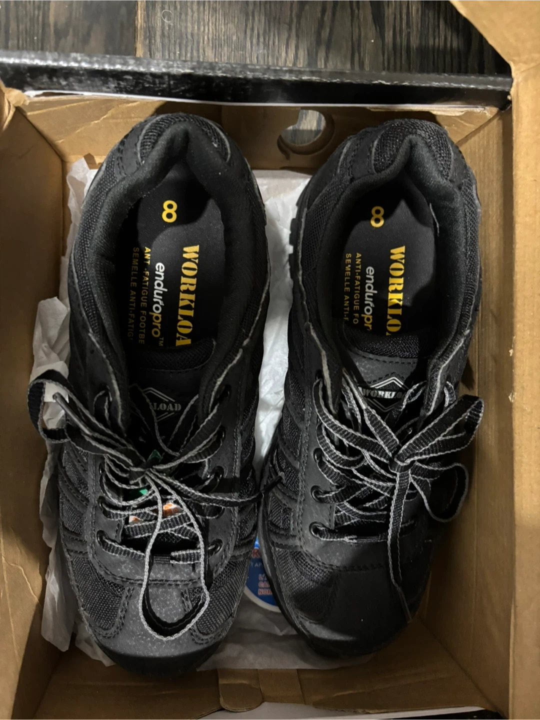 Selling a pair of Workload X5 Comfort women's safety shoes in size 8! These shoes feature a wide fit steel toe for protection and a breathable lining for comfort. They also have a shock-absorbing insole and an anti-fatigue outsole, perfect for long days on your feet. The original price was $49.97 plus tax, and the box is included!