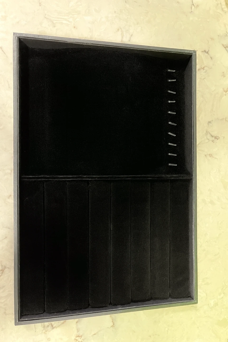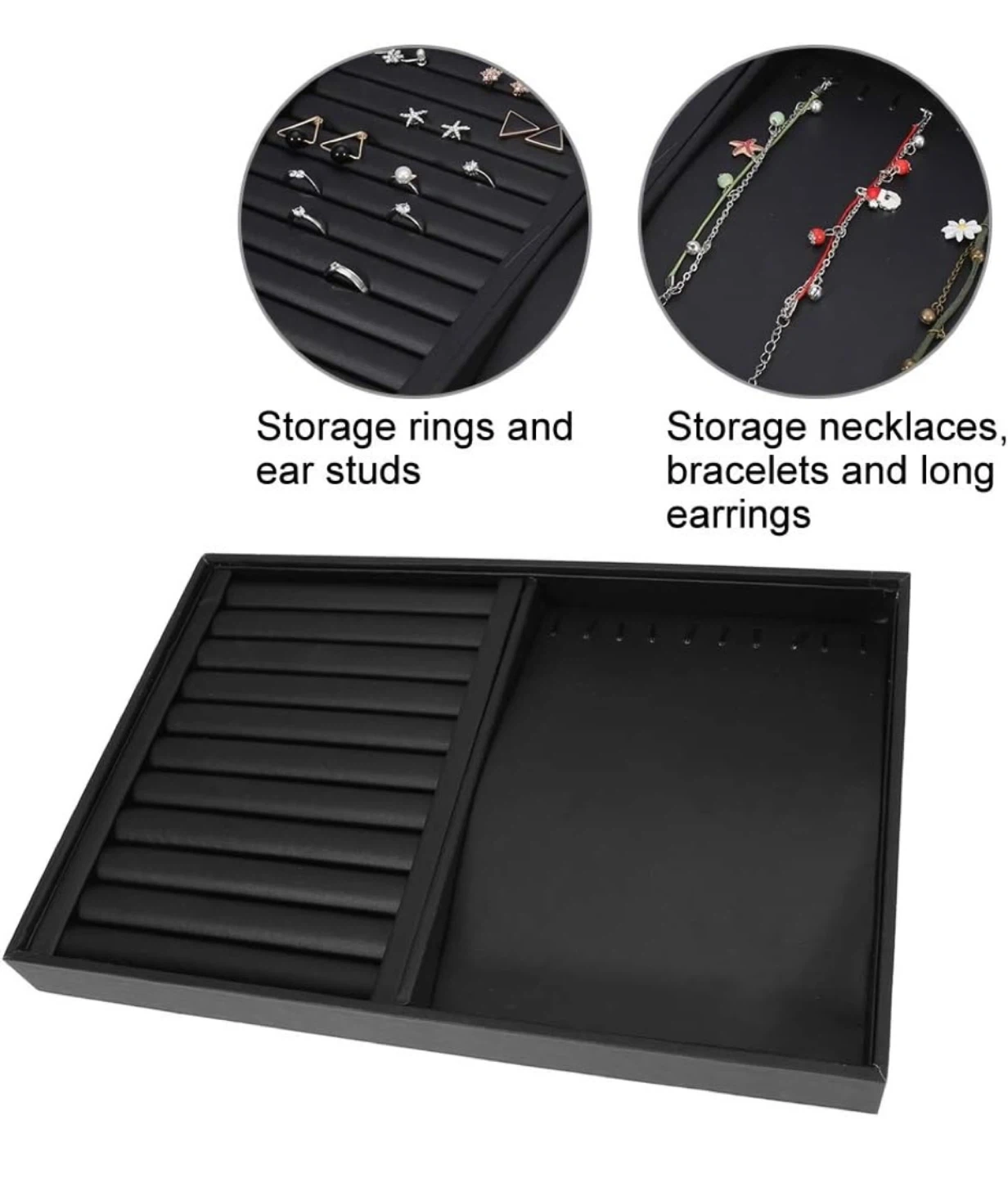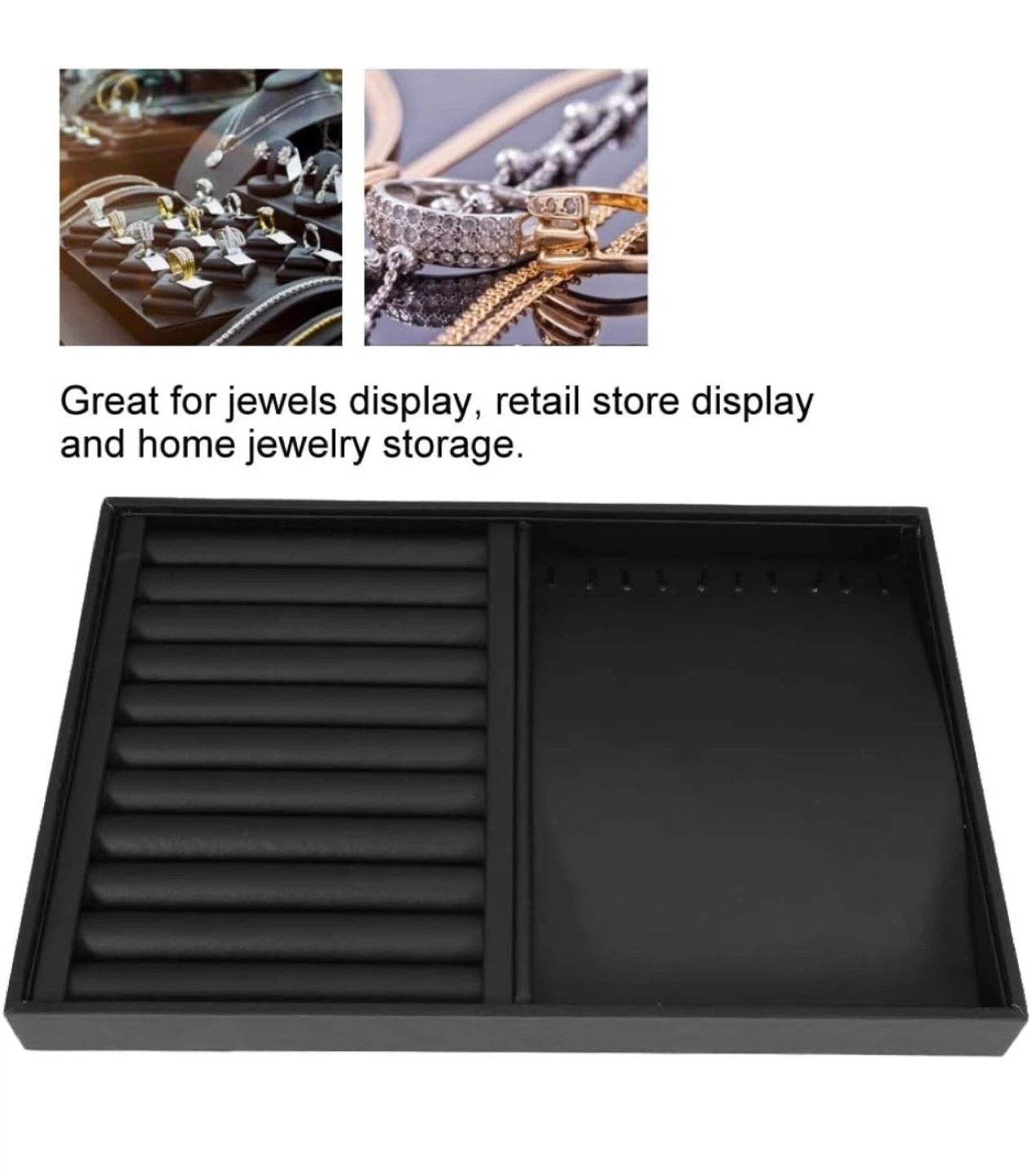Selling a black jewelry storage tray, perfect for organizing rings, earrings, necklaces, and bracelets! It's great for displaying jewels, retail store displays, and home jewelry storage