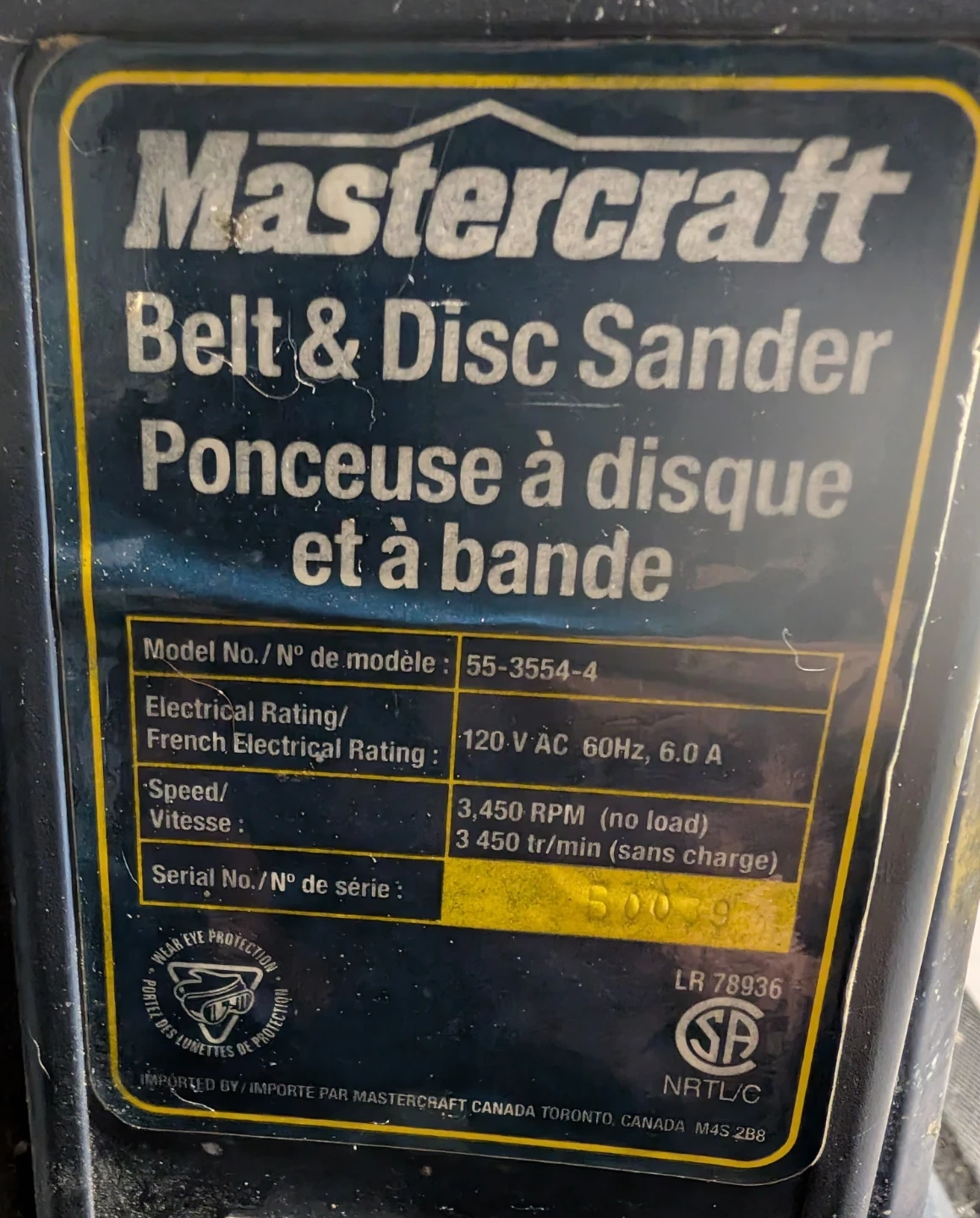 Mastercraft belt and disc sander. It has an adjustable table and tilting belt.