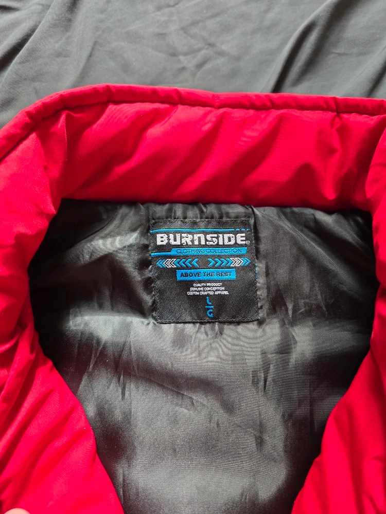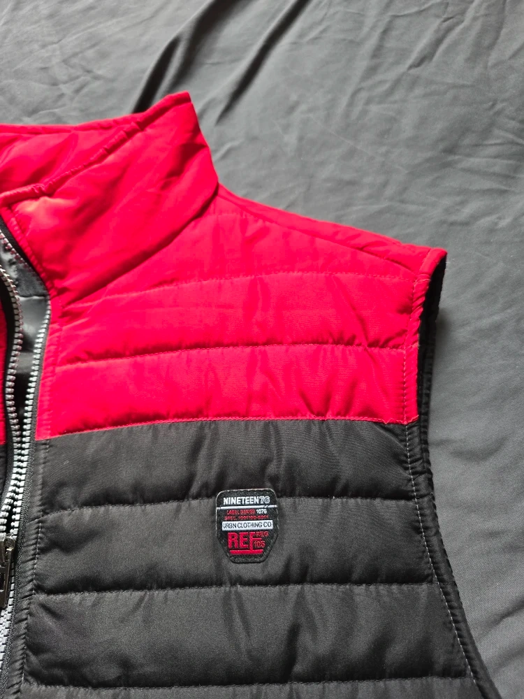 Selling a Burnside Clothing Collection vest in size large! It features a colour block design in red, black, and grey. Perfect for layering during the cooler months!