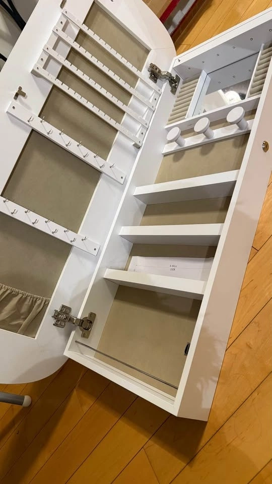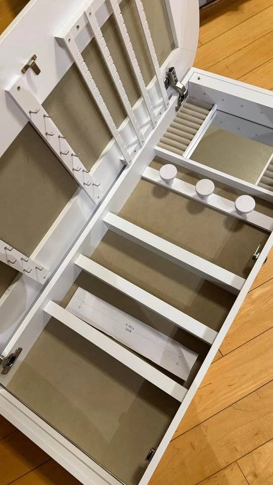 With built-in LED lights, a full-length mirror, and tons of smart storage for jewelry and cosmetics, it’s a gorgeous upgrade for any bedroom or dressing space. Sleek white exterior + greige lining — stylish and modern.