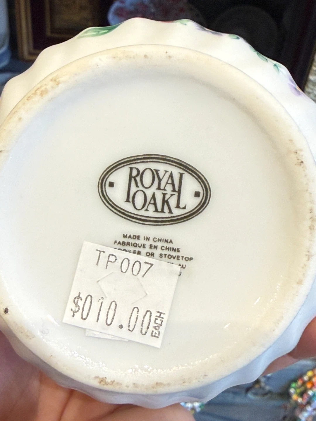 Buy & SellRoyal Oak Floral BowlRoyal Oak Floral Bowl$8Small royal oak bowl/planterConditionLike newWHERE TO MEETStoreView MapSELLERverifiedTatyanaAnnex761 review0 chats·0 favorites·2 views