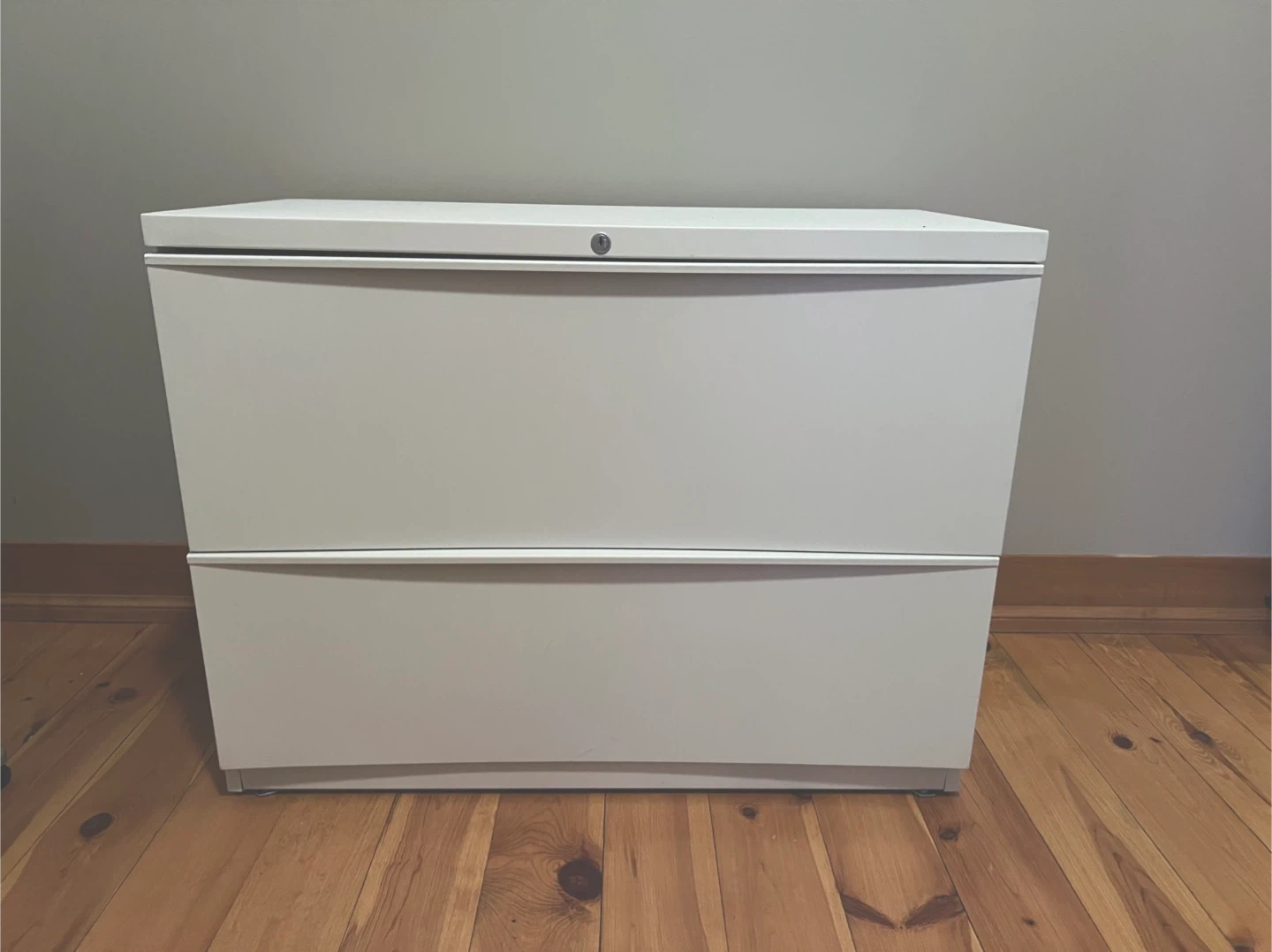 (1) White 36” wide two-drawer lateral file cabinet like-new condition
