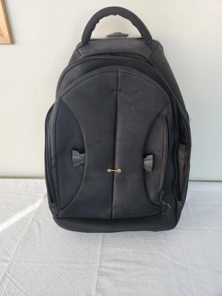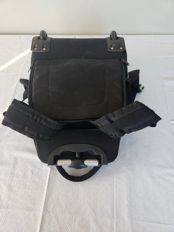 Has smooth wheels for pulling, as well as straps for carrying if preferred