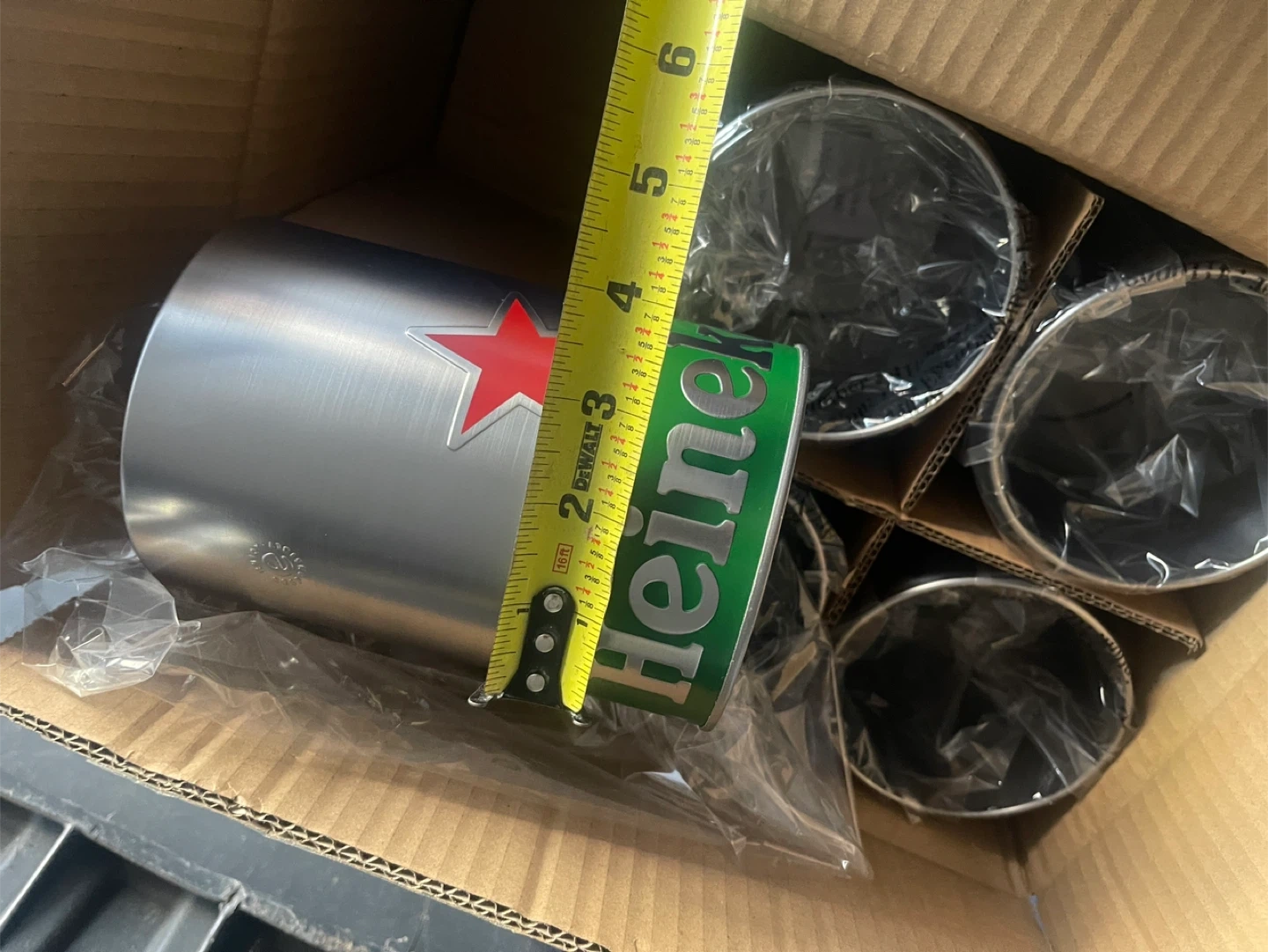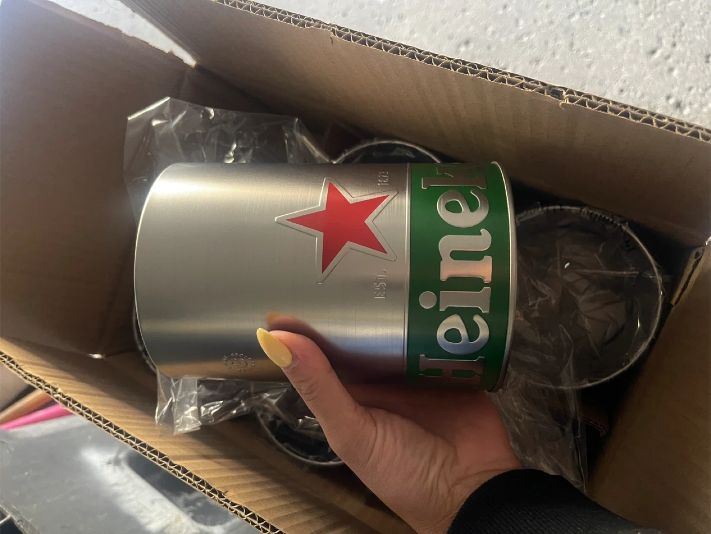 Selling a set of 12 Heineken keg cups! They're brand new and still in their original packaging. These stainless steel cups are designed to look like mini Heineken kegs, perfect for any beer enthusiast. Each cup measures approximately 5 inches tall.