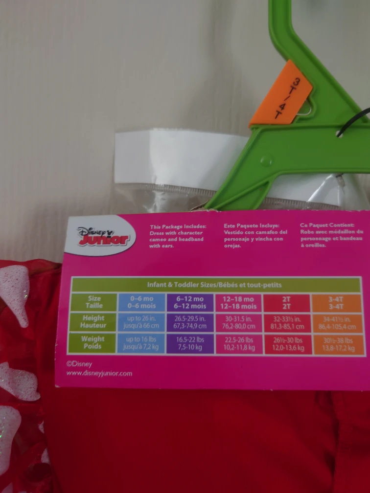 This adorable Minnie Mouse costume is perfect for your little one! It's brand new and comes with the dress, character cameo, and headband with ears. The size is toddler 3-4T, suitable for a height of 33-41.5 inches and weight of 30-38 lbs. Originally bought for $24.98!
