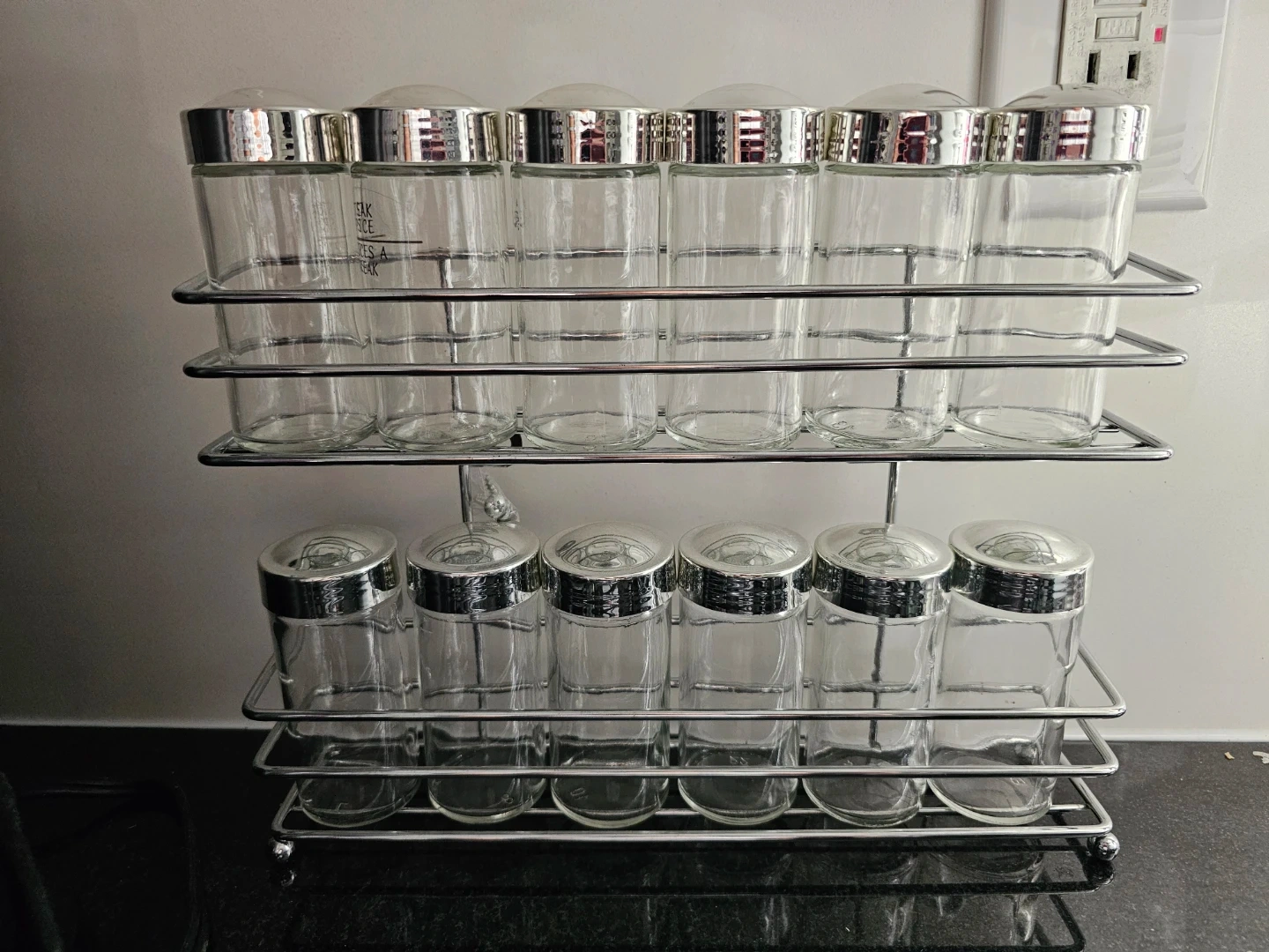 Selling a spice rack that comes with the jars! It's a great way to organize your spices and keep them within easy reach while cooking